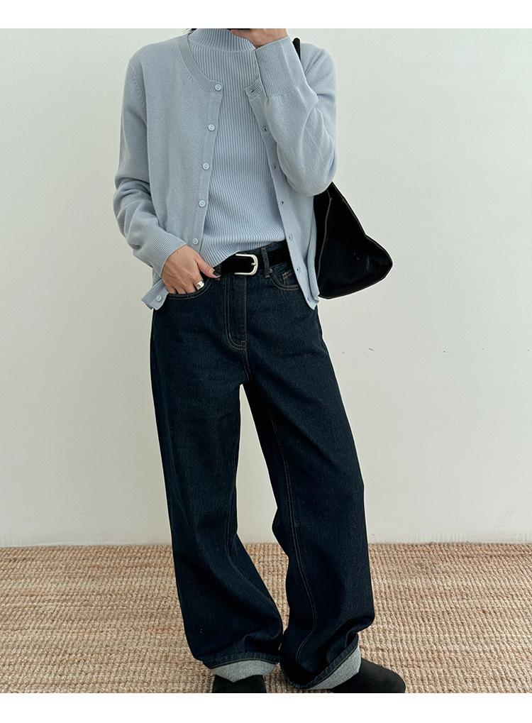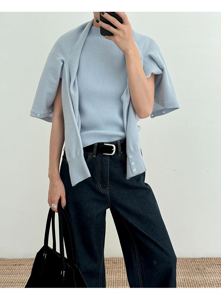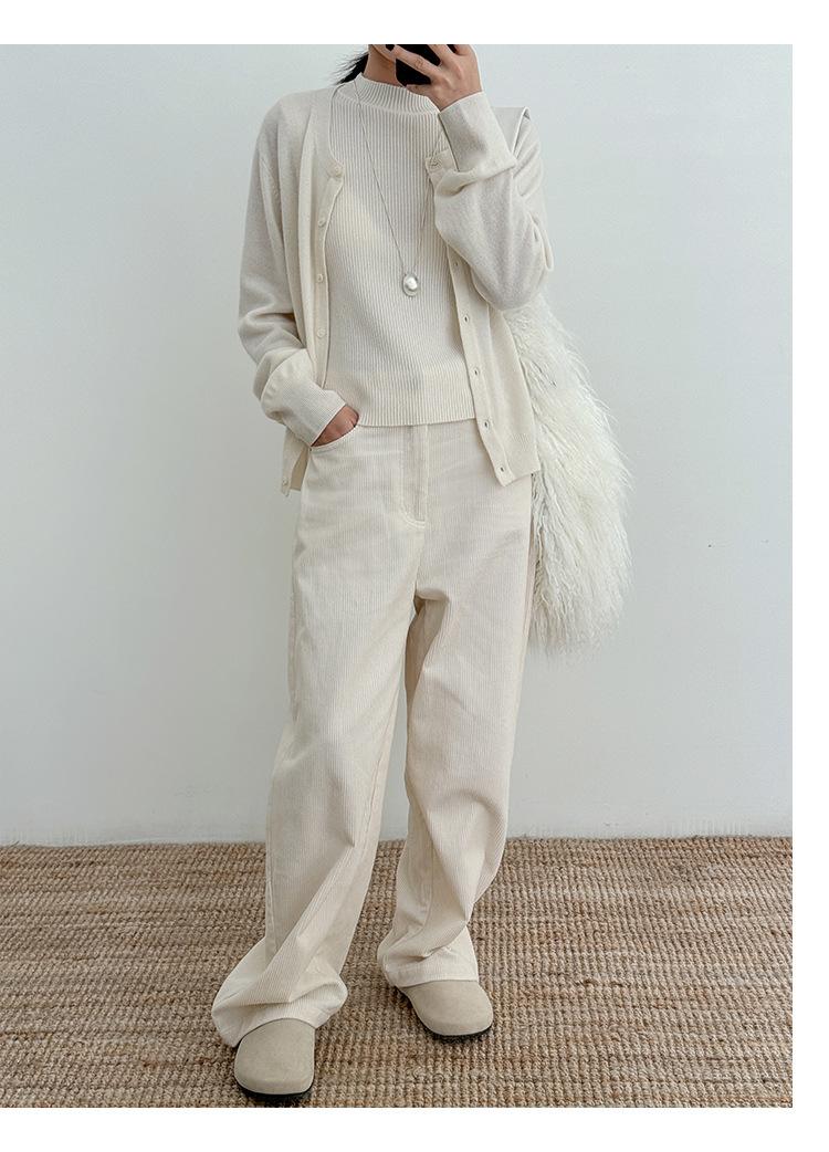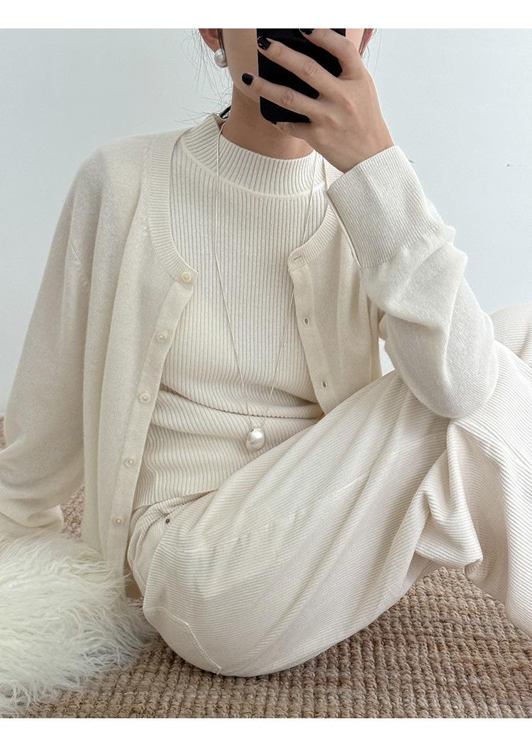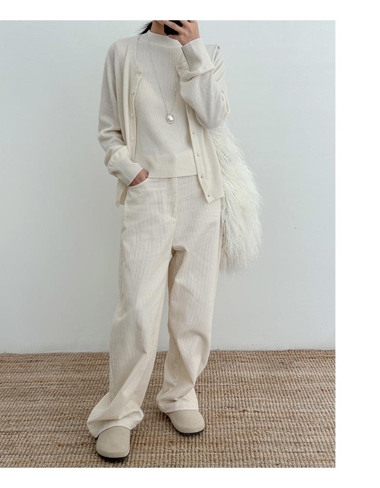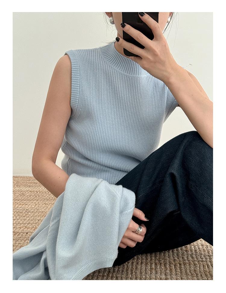 Estilo Desejo Limpo Puro Colete de Lã Feminino 2025 Treze Linhas Primavera Novo Suéter de Lã Listrado Vertical 52573