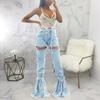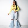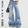 2019 Nova moda transfronteiriça europeia e americana usada à mão cintura alta lavada elástica sexy Denim calças cortadas