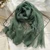 Cachecol Leve de Algodão e Linho Tie-Dye Liso para Mulheres, Estilo Fino, Novo Lenço Xale de Algodão Seda Macio para Primavera e Outono 2025, Cor Sólida