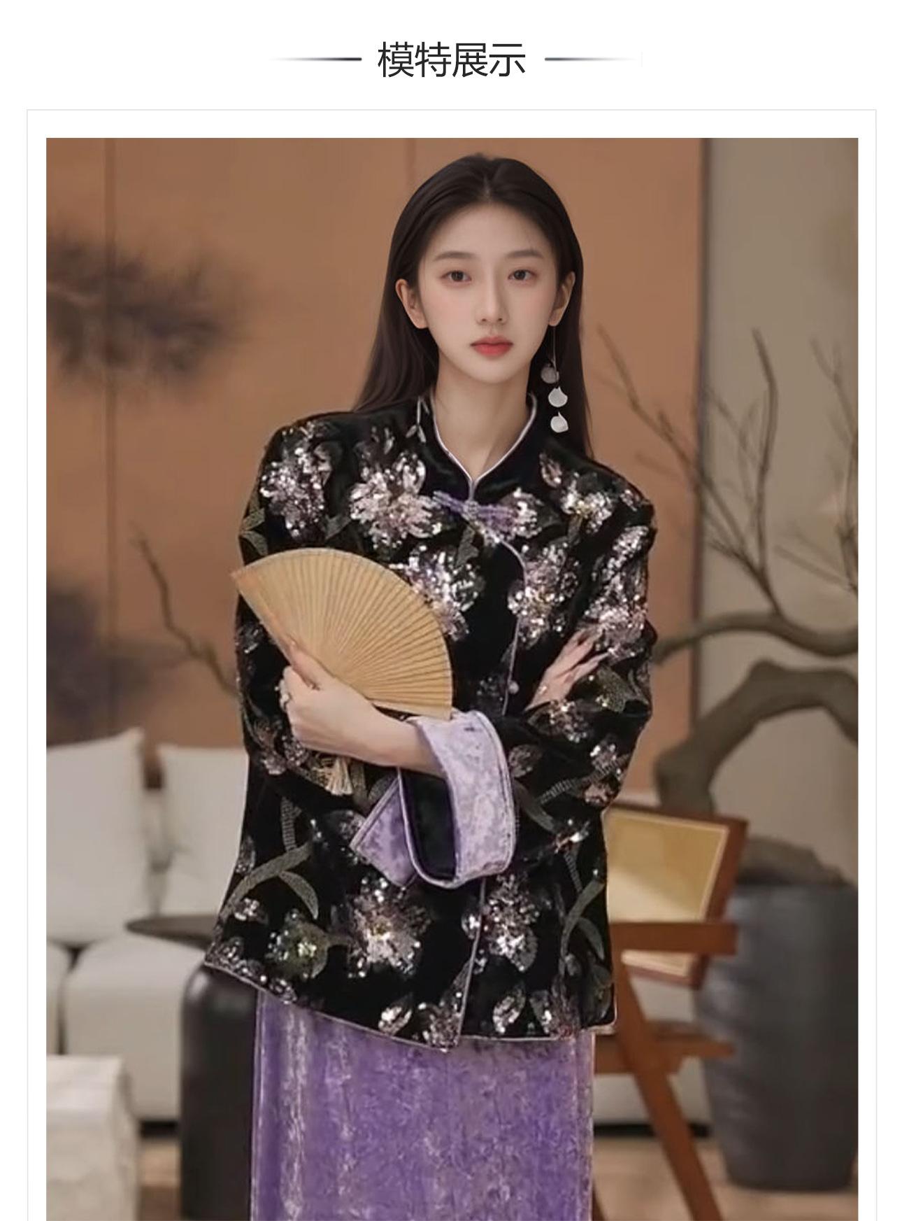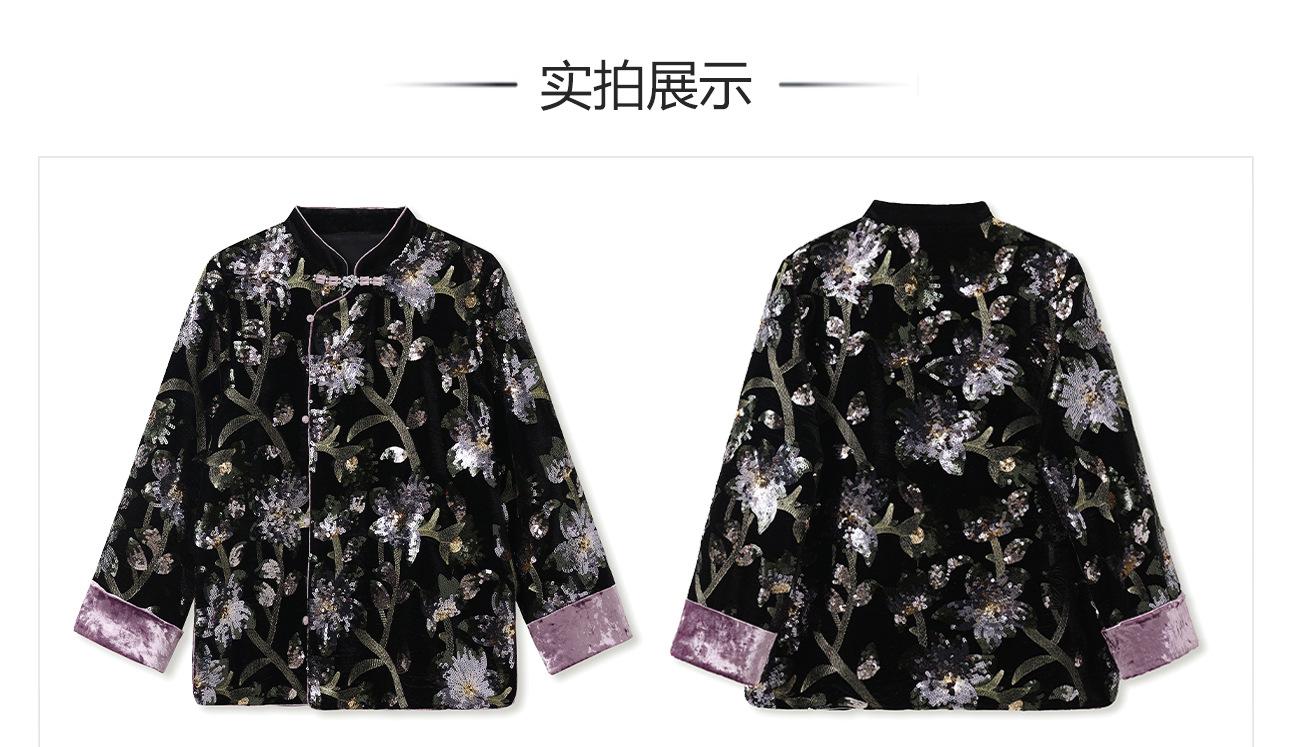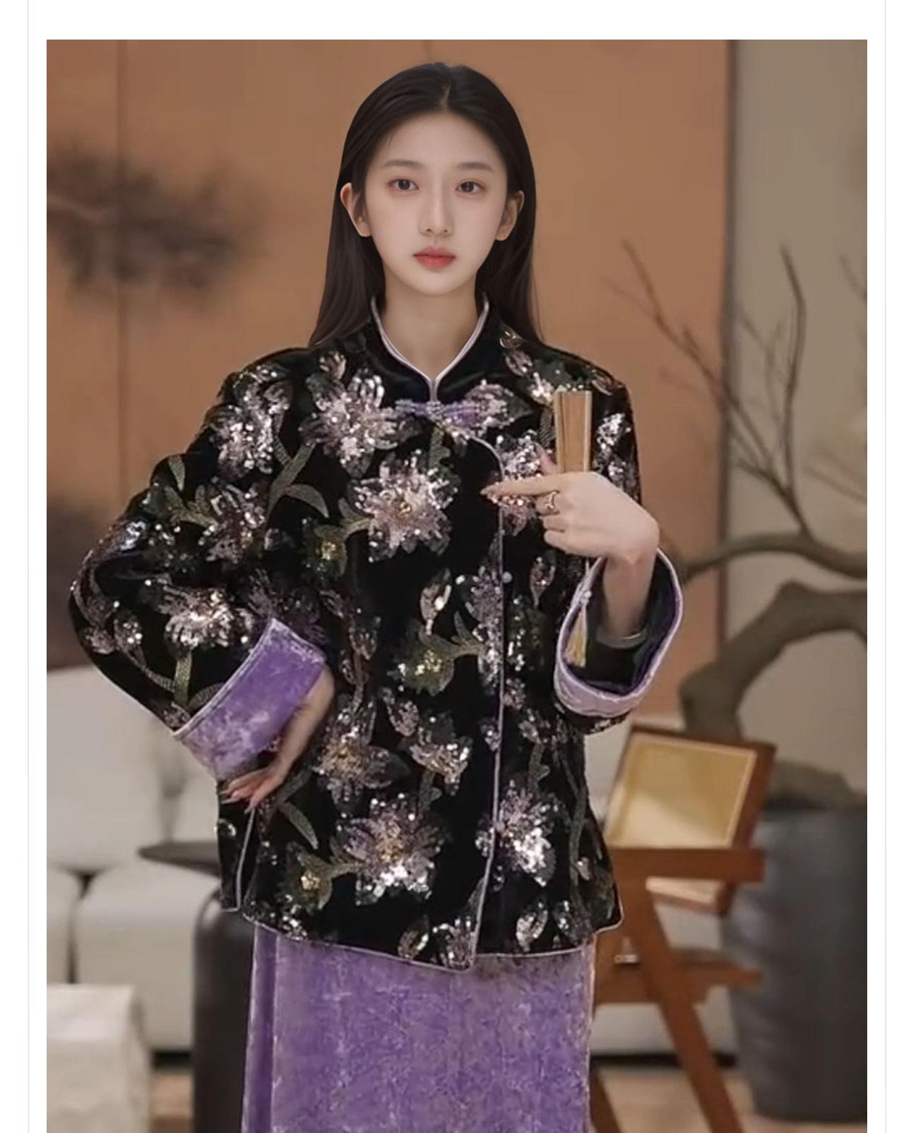 Início do Outono Novo Estilo Chinês Antigo Qian Feng Indústria Pesada Casaco Bordado Guofeng Vintage Bordado Lantejoulas Sobressaia Terno Feminino M9159
