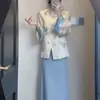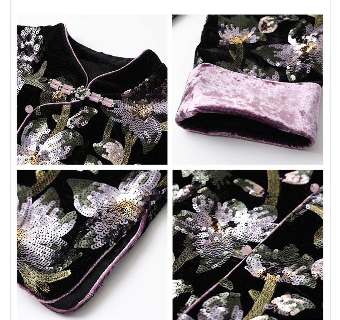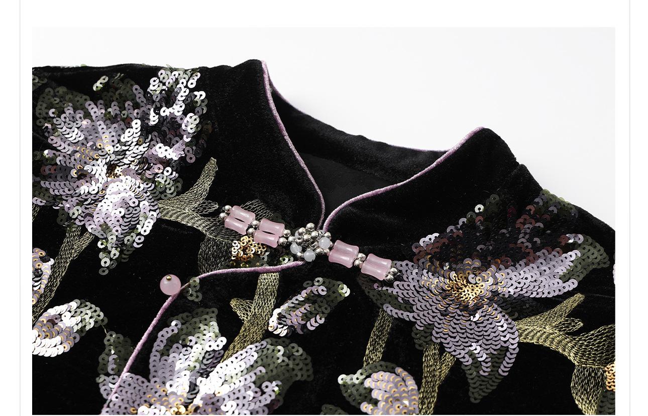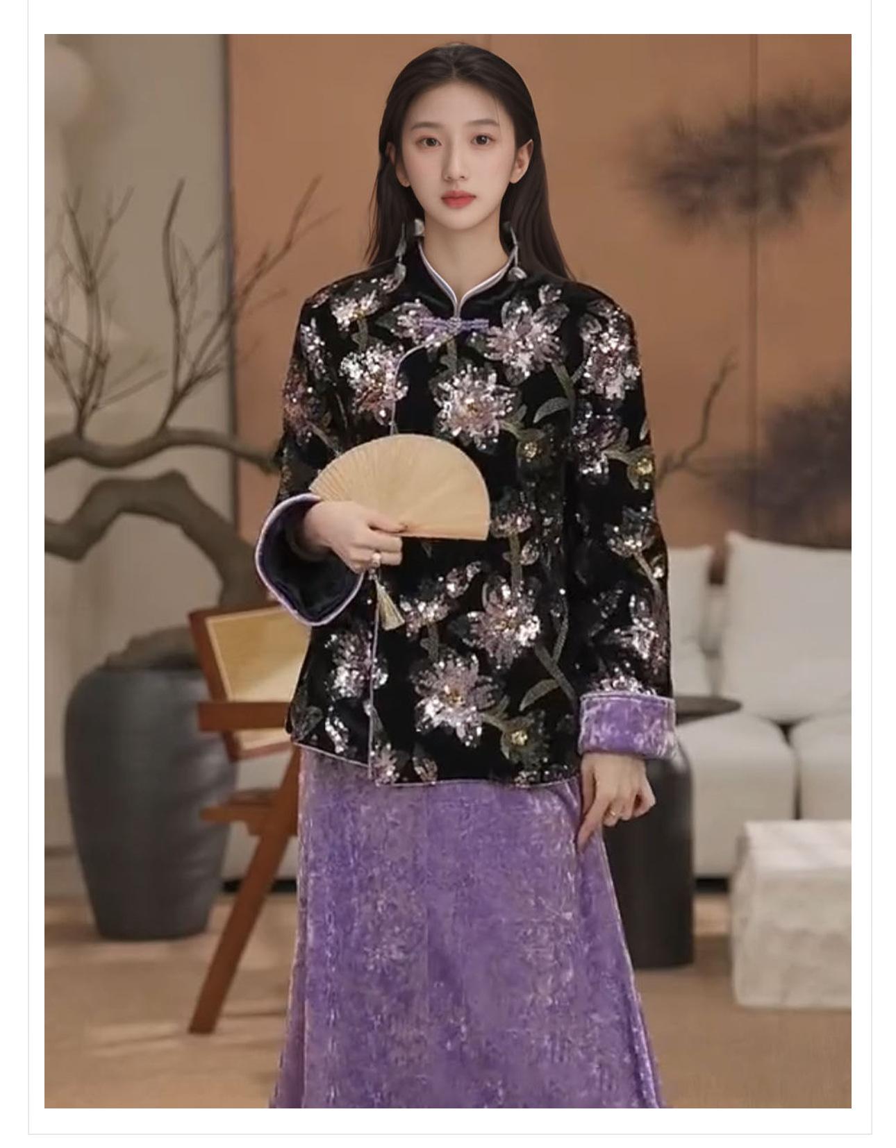 Início do Outono Novo Estilo Chinês Antigo Qian Feng Indústria Pesada Casaco Bordado Guofeng Vintage Bordado Lantejoulas Sobressaia Terno Feminino M9159
