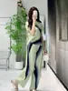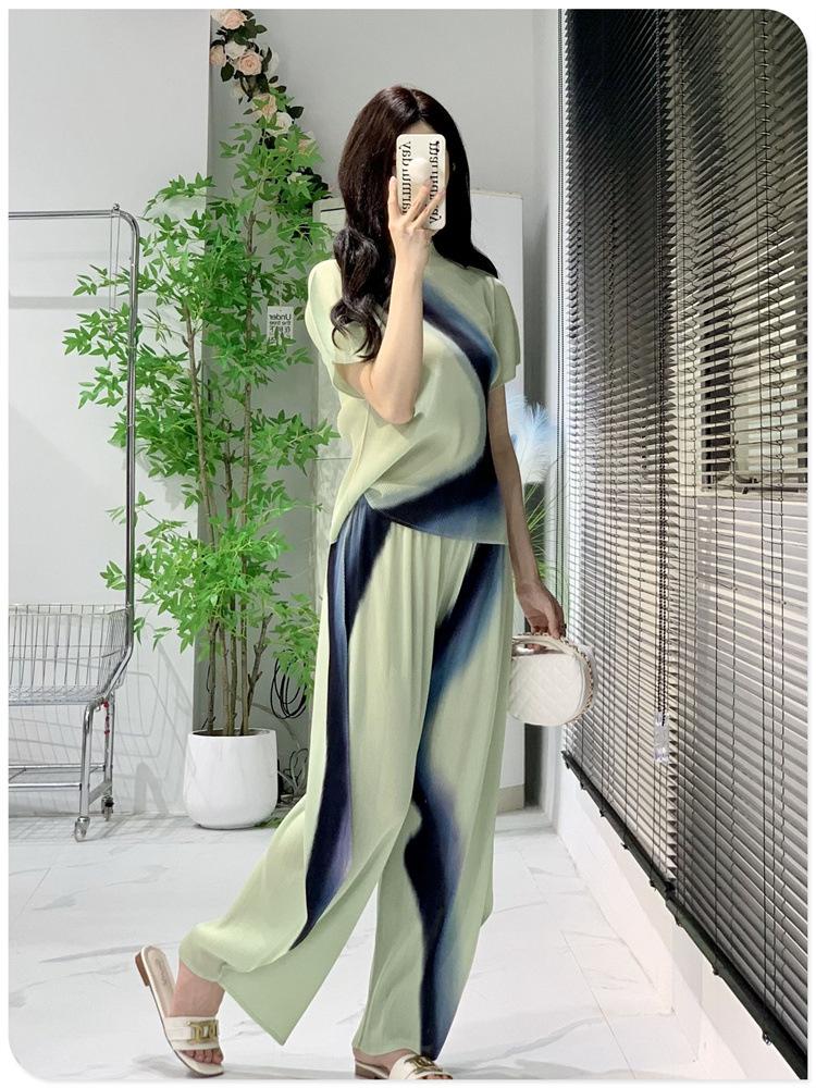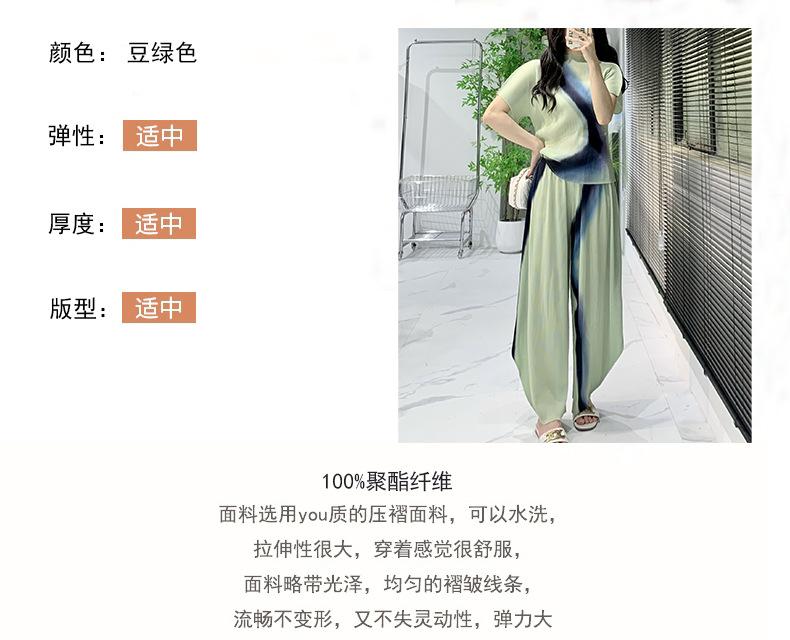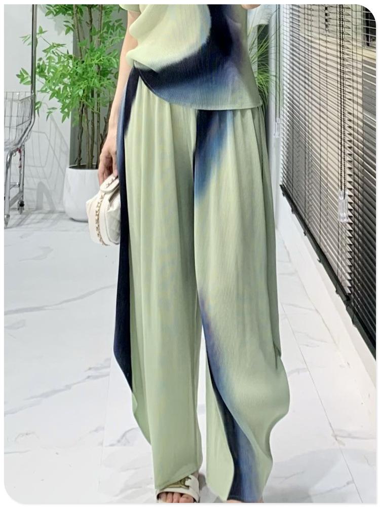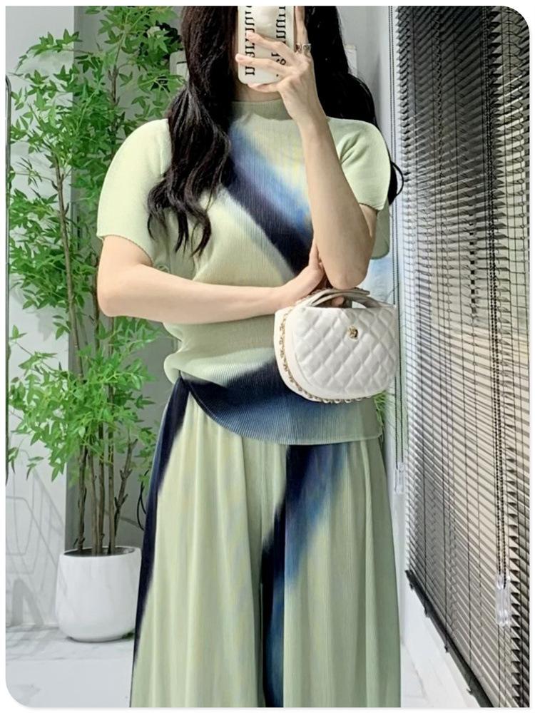 Miyake plissado 2024 verão novo gradiente vinheta terno moda casual feminina slim t-shirt calças soltas duas peças