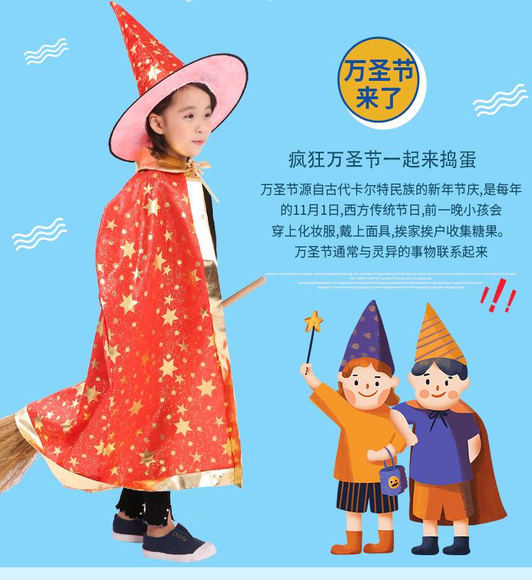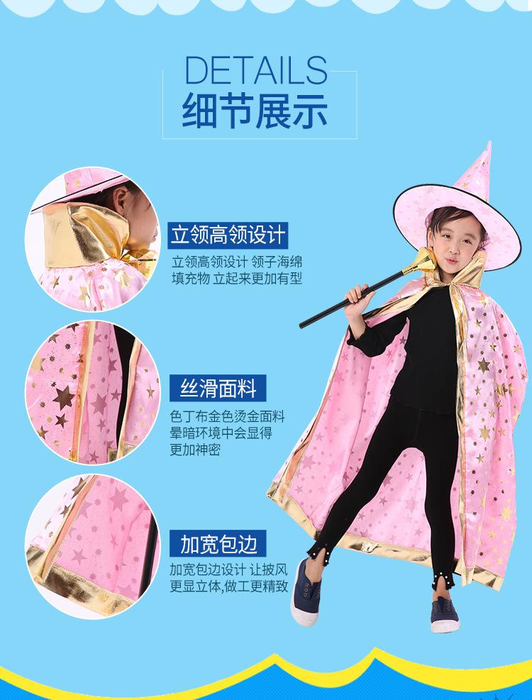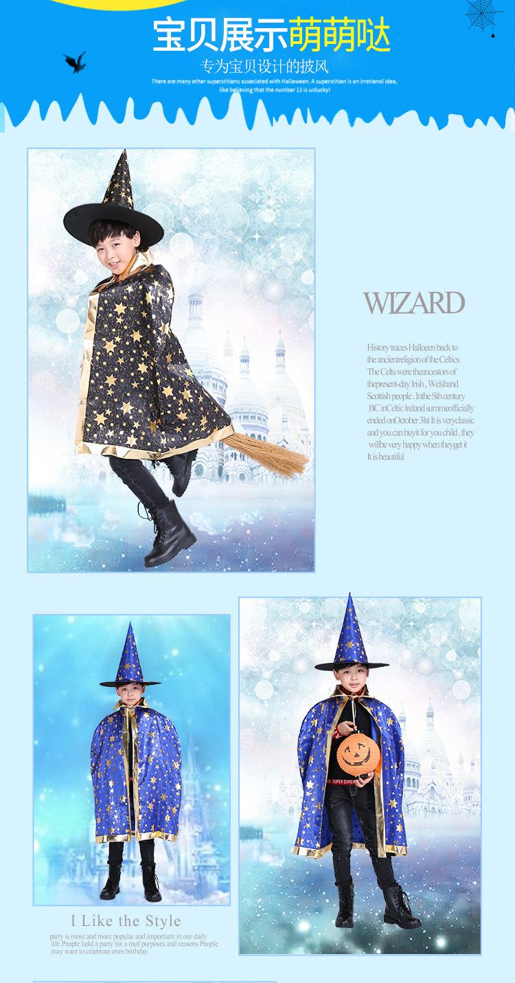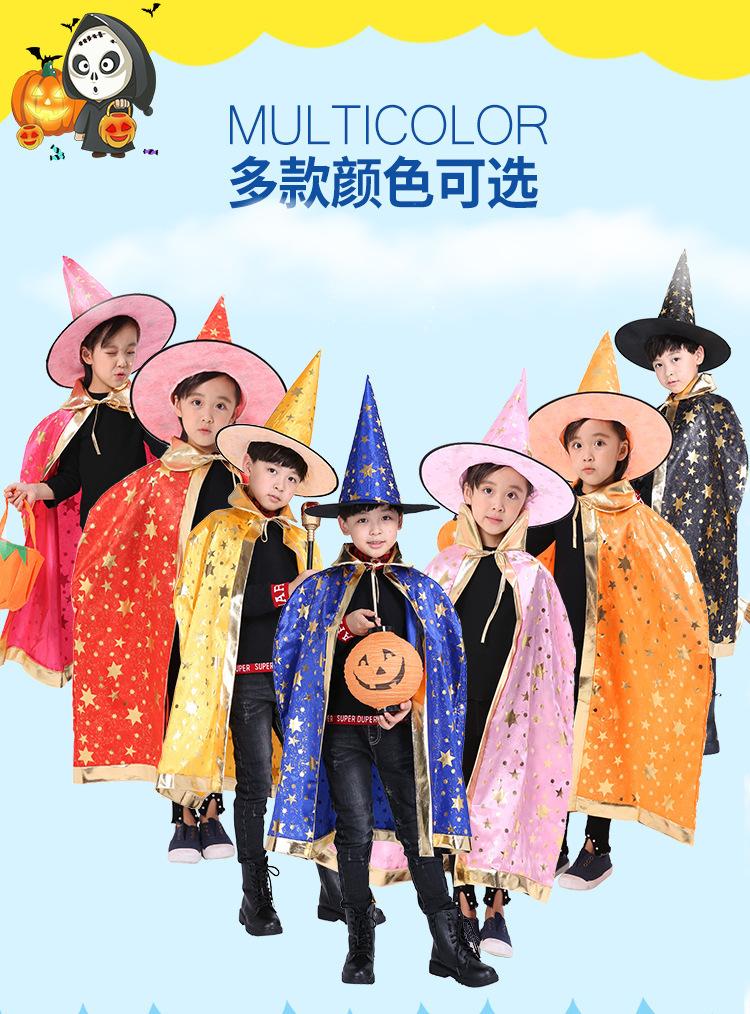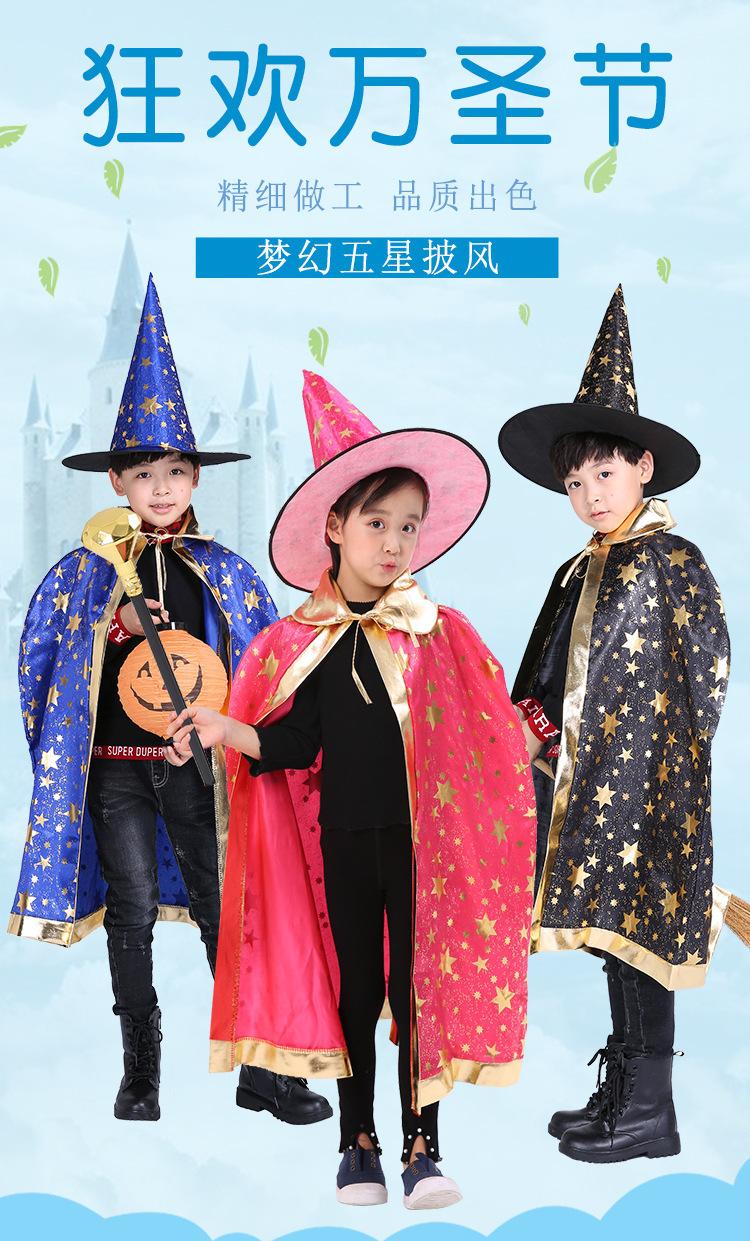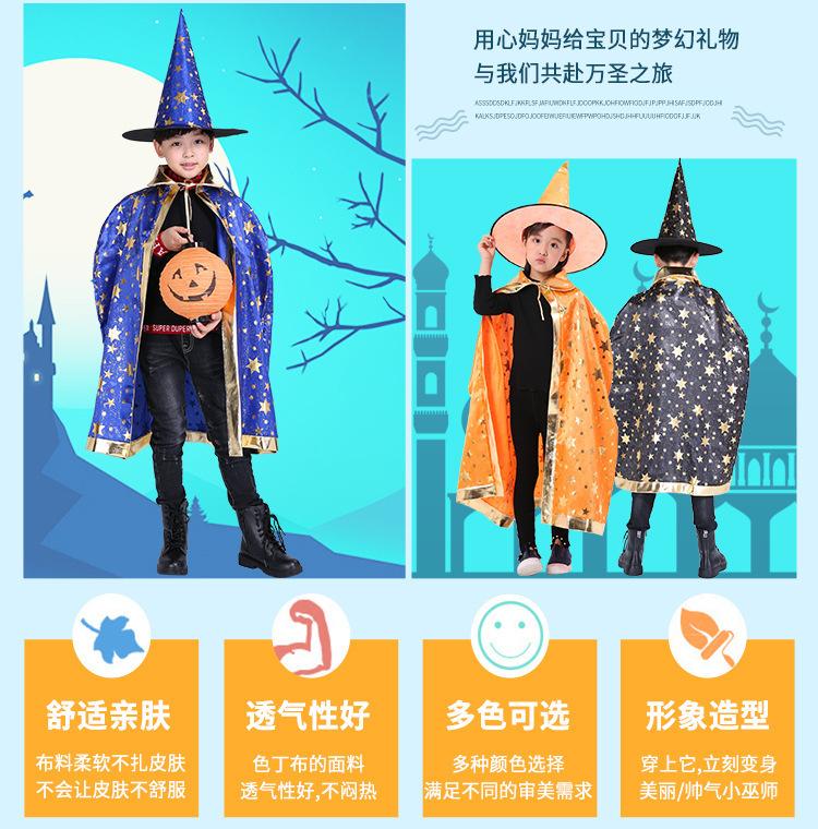 Cross-border halloween infantil manto traje cosplay mago mágico manto chapéu traje do partido