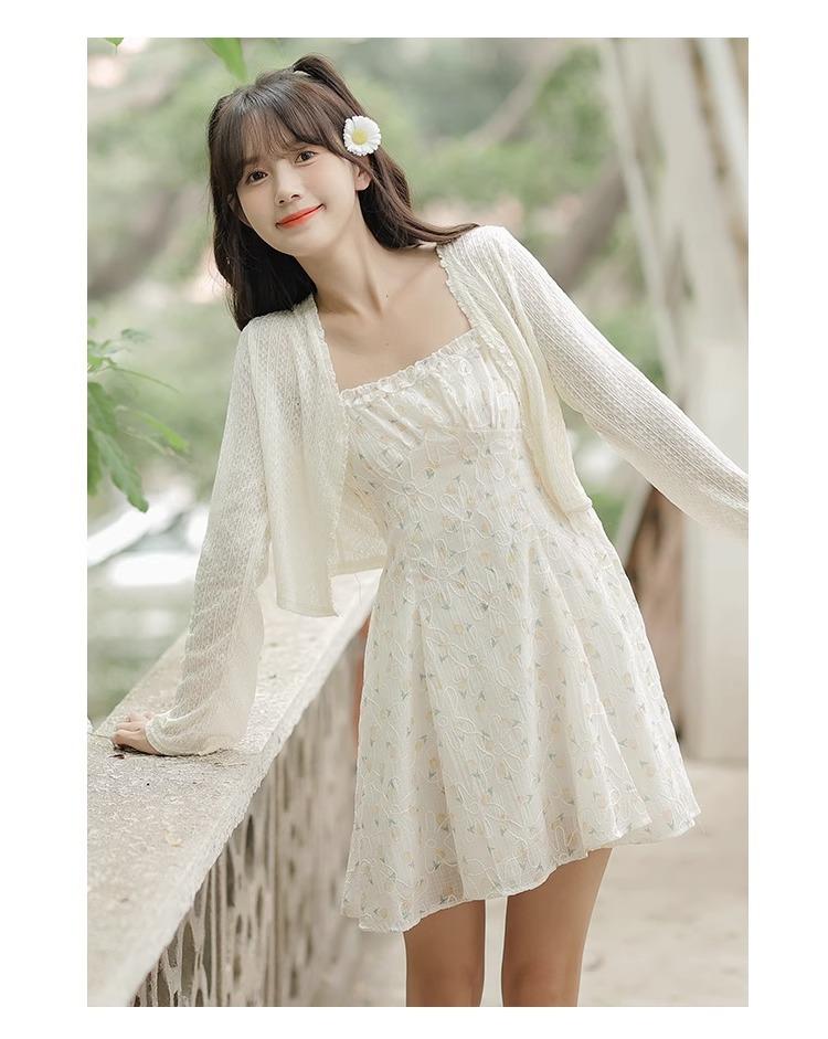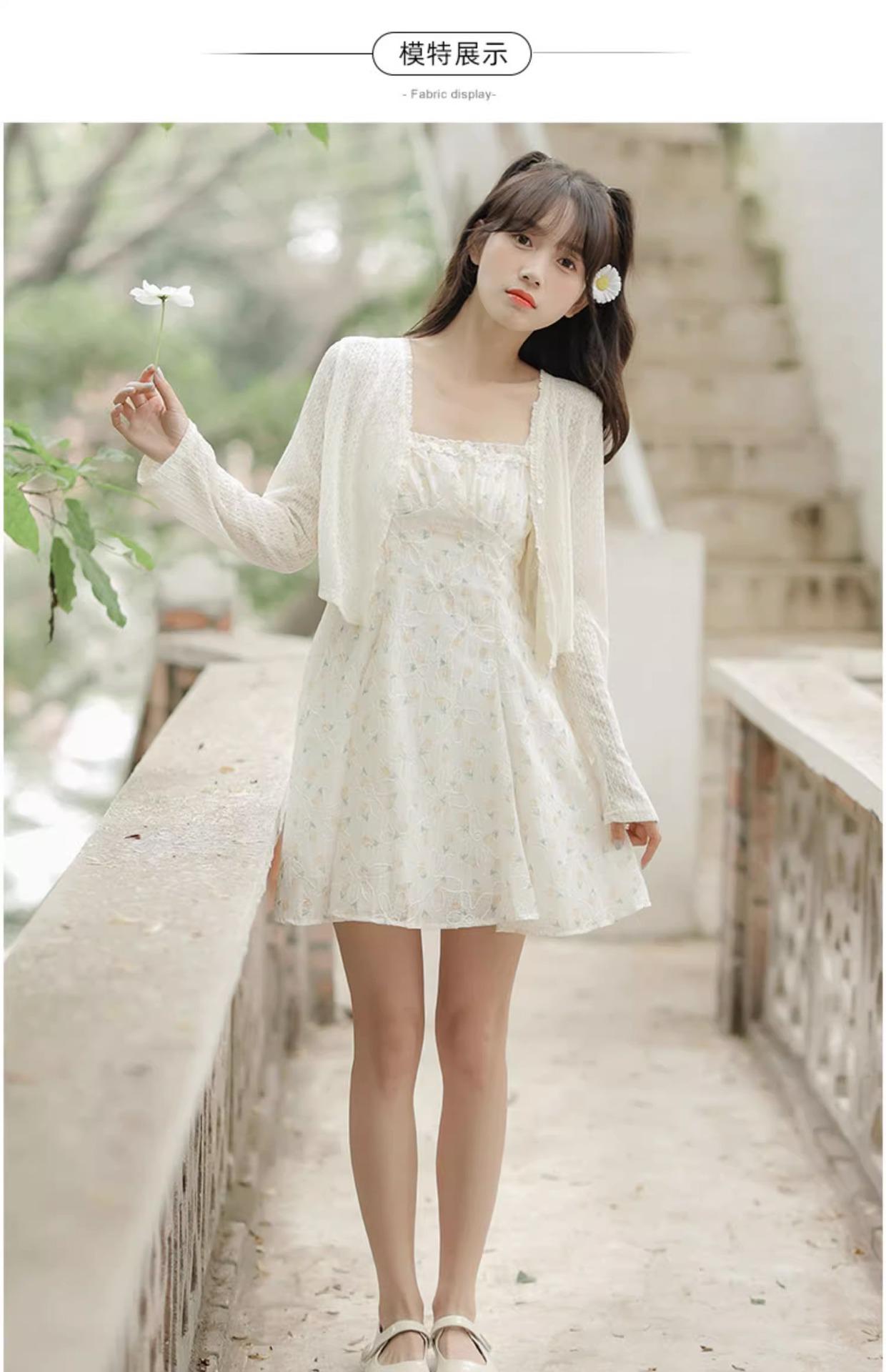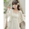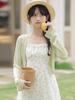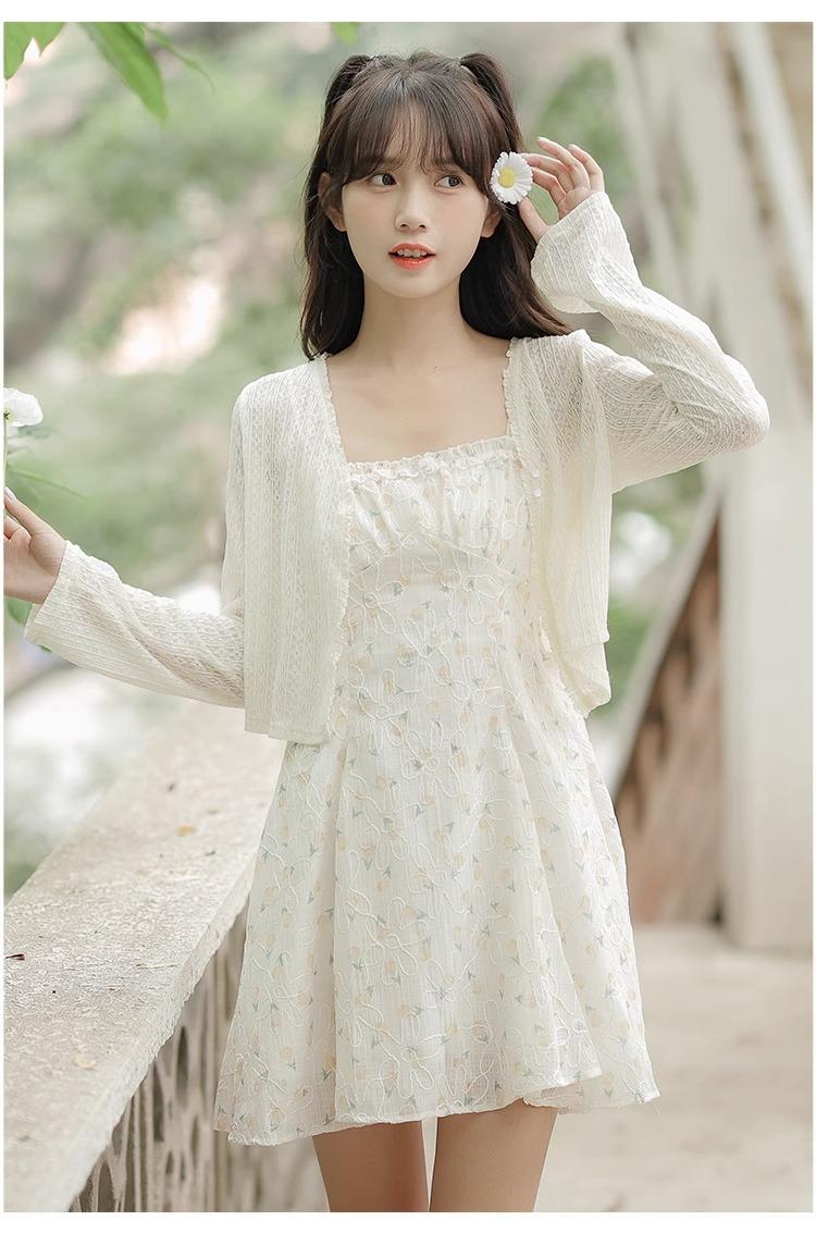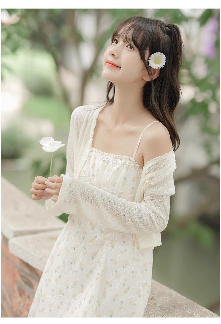 Cardigã Francês de Proteção Solar para Mulheres Usarem no Outono e Verão com Saia Suspensório, Blusa Xale, Jaqueta Pequena com Cintura Marcada Elegante