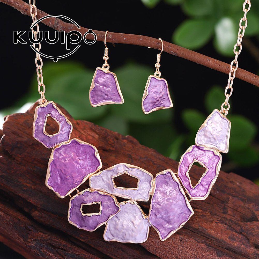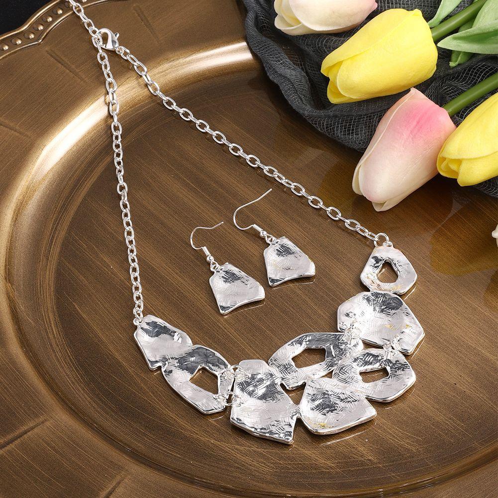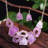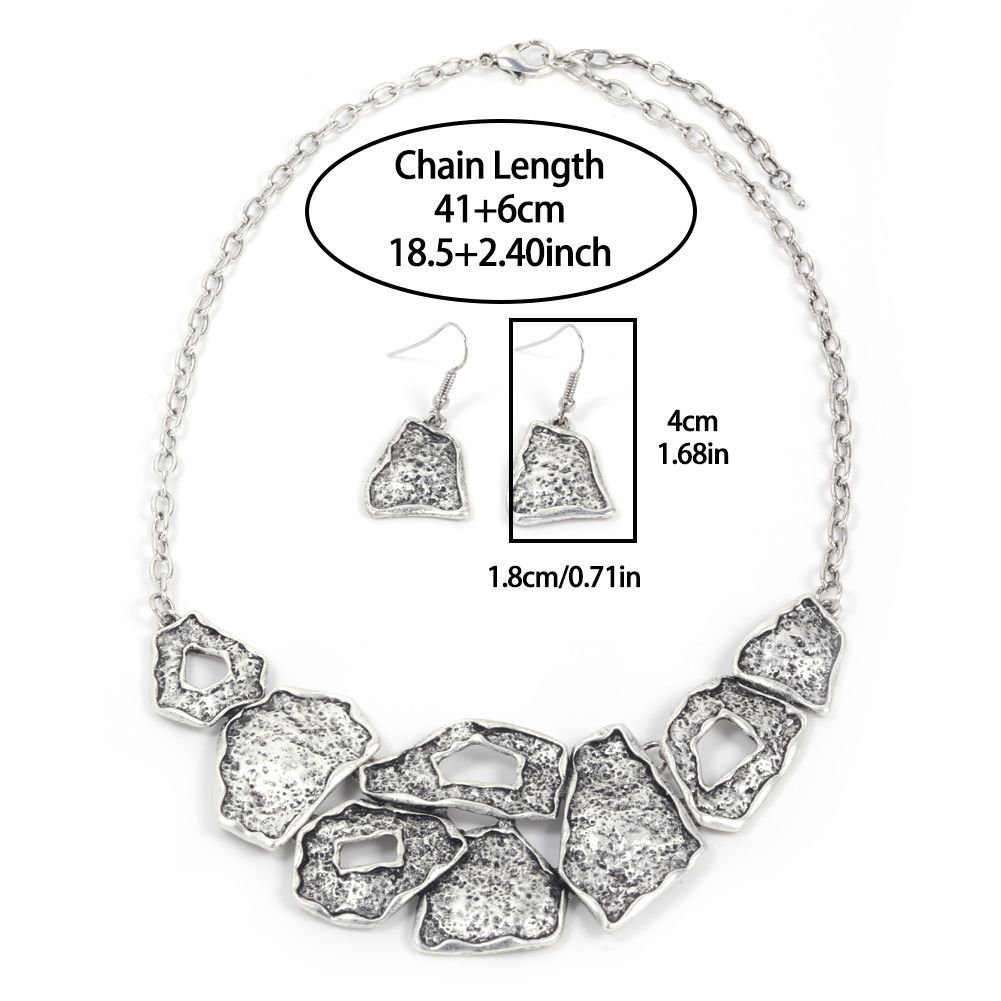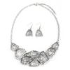 Zinc Alloy Geometric Irregular Square Hollow Out Colorful Oil Drop Exquisite Design Necklace Earrings Set, simple