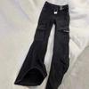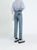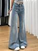 Calças Jeans Lavadas Velhas Costura Micro-flared Cinza em estoque Inteiro Único Rua Na Moda Básico Reto Cintura Média