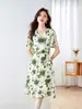 Vestido de chiffon feminino 2023 verão novo vestido de manga curta elegante para mulheres de meia-idade que cobre a barriga e emagrece