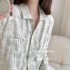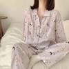 Pijama feminino com almofada no peito 2024 Primavera e Outono Nova Nuvem Algodão Calças de manga comprida Doce Roupas Soltas para Casa para Uso Externo