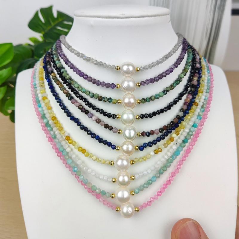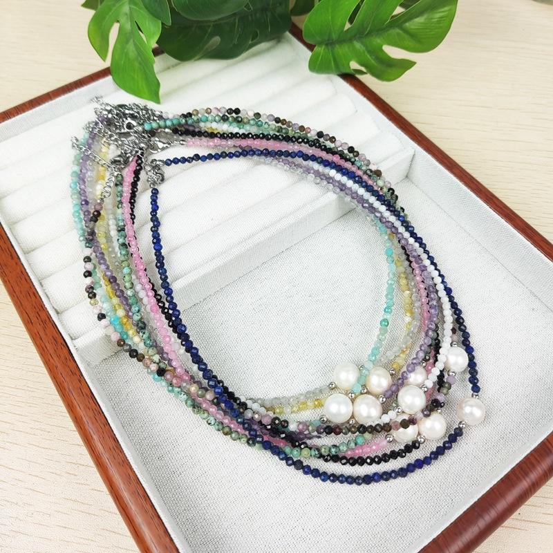 Material: Pérolas de água doce, pedras semipreciosas naturais