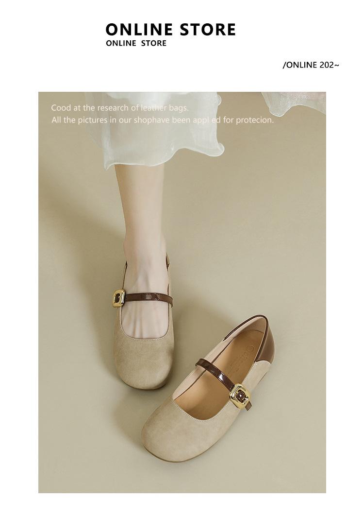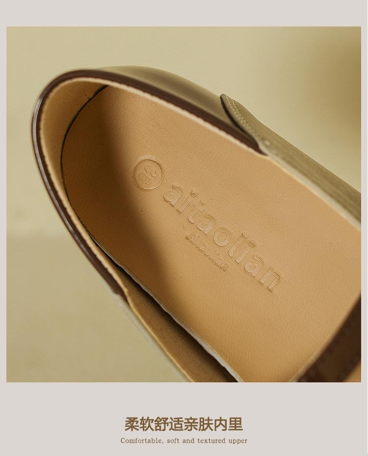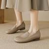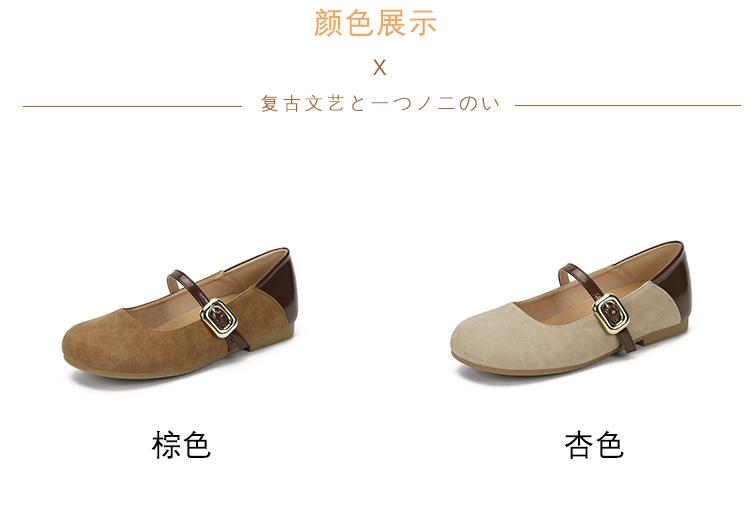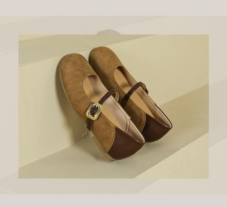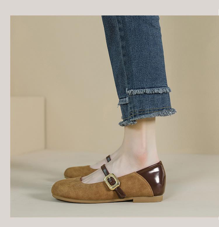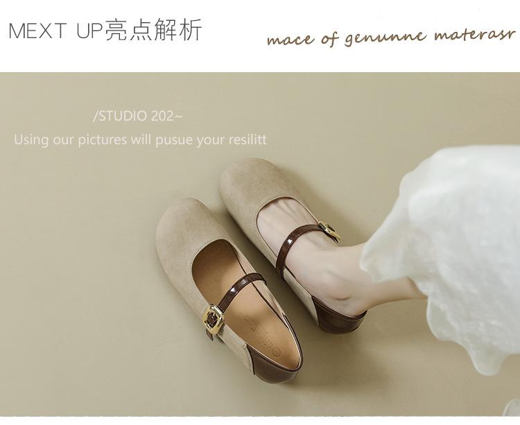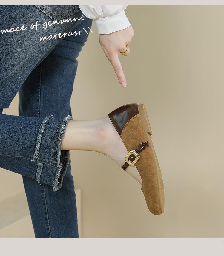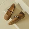 Sapatos Mary Jane de couro legítimo femininos 2024 novos sapatos de boneca de cor plana emendada sapatos de ervilha antiderrapantes de sola macia