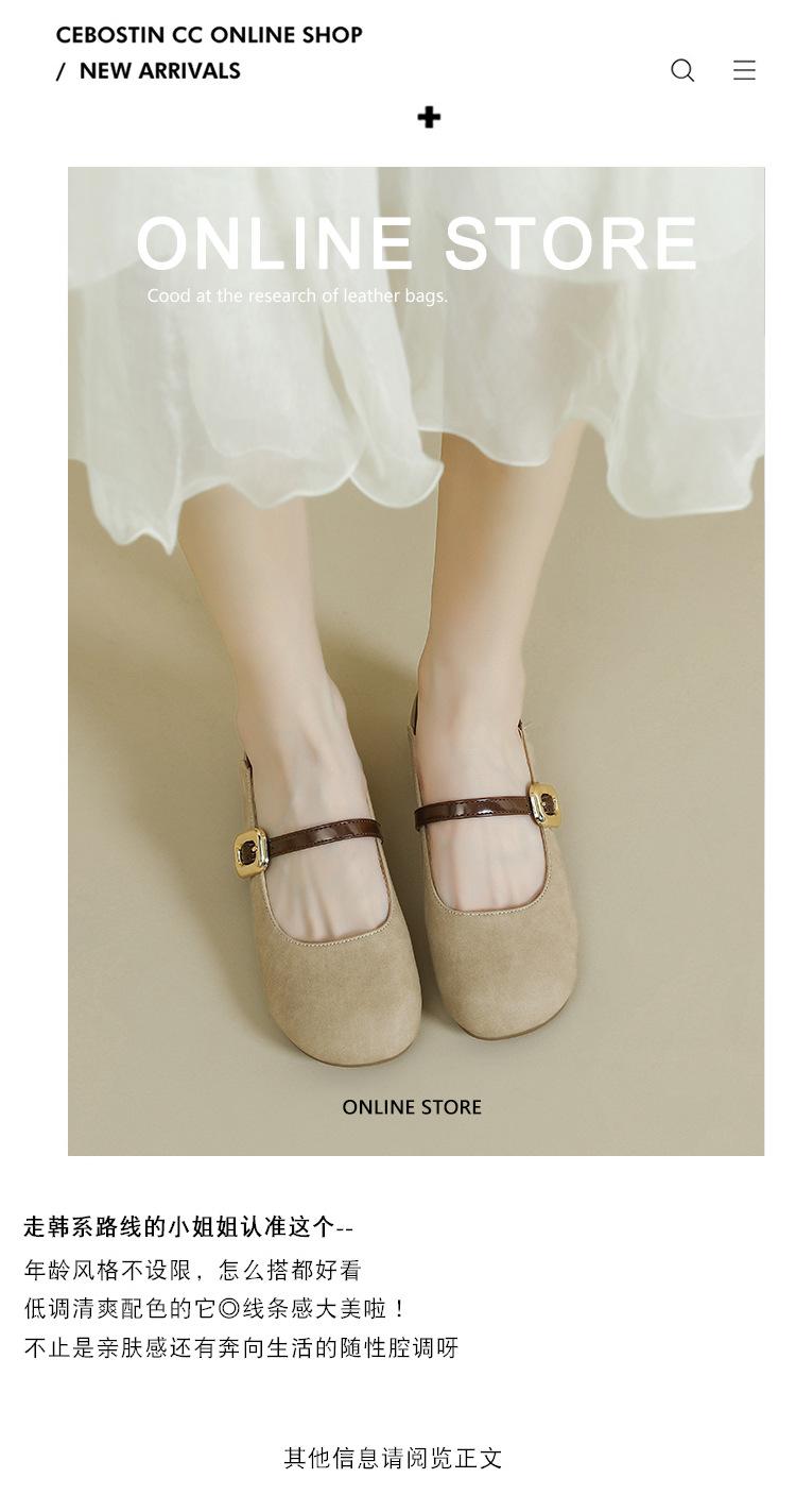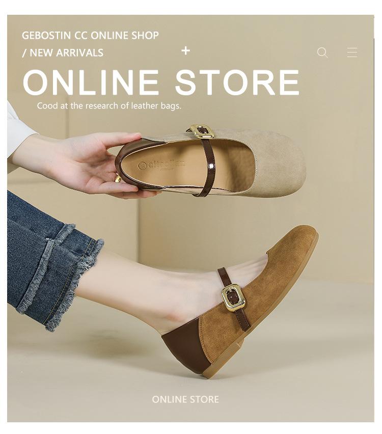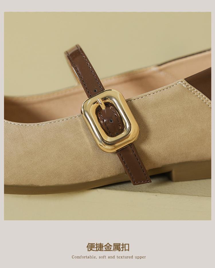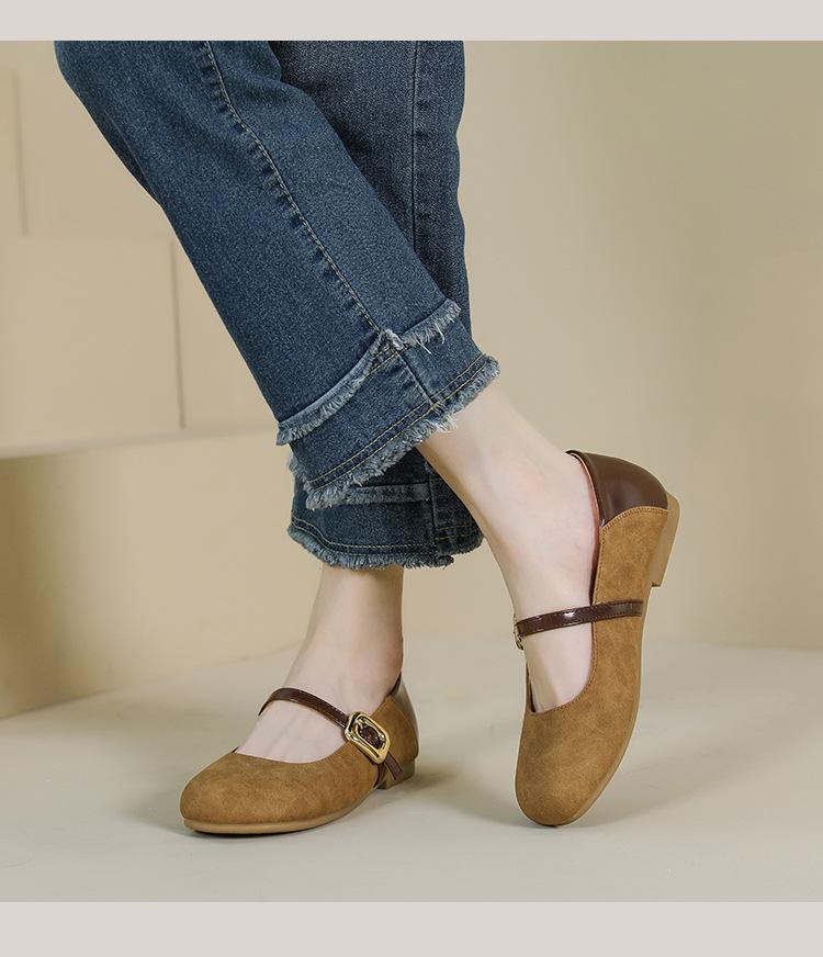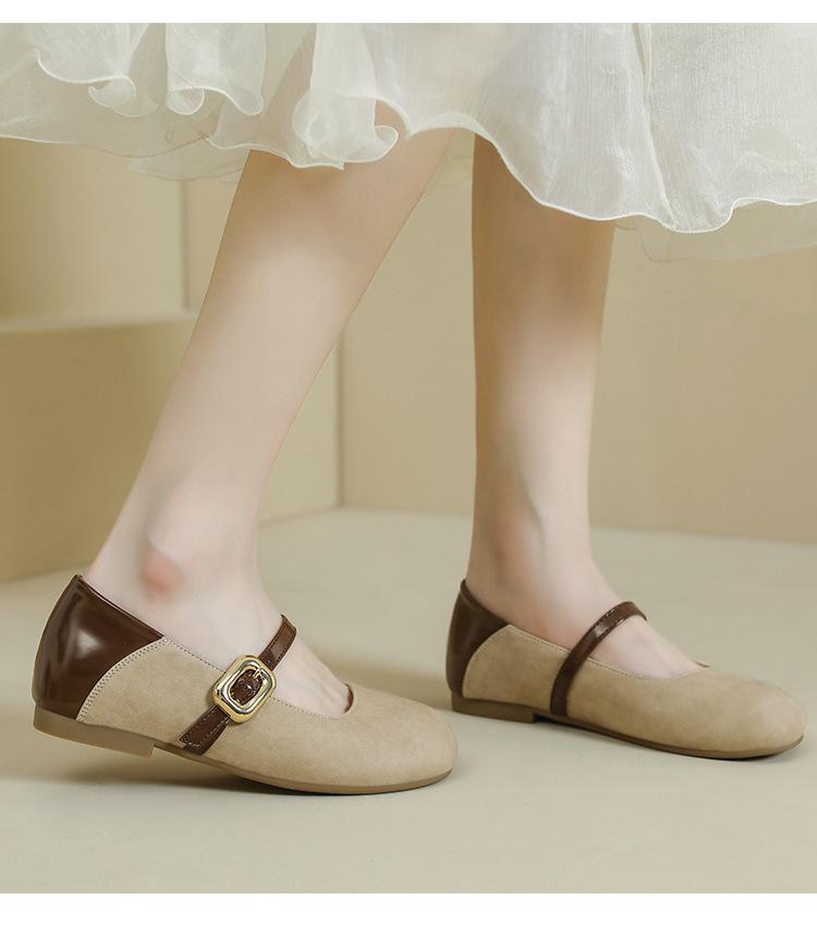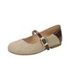 Sapatos Mary Jane de couro legítimo femininos 2024 novos sapatos de boneca de cor plana emendada sapatos de ervilha antiderrapantes de sola macia