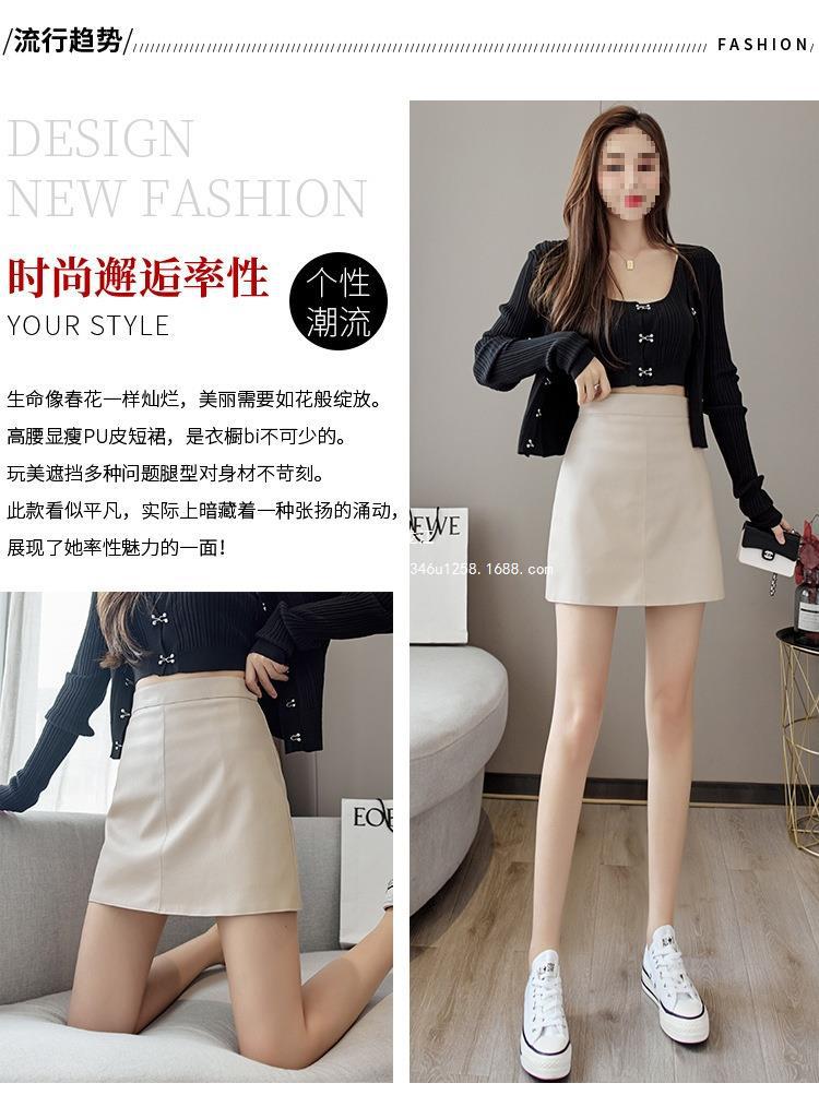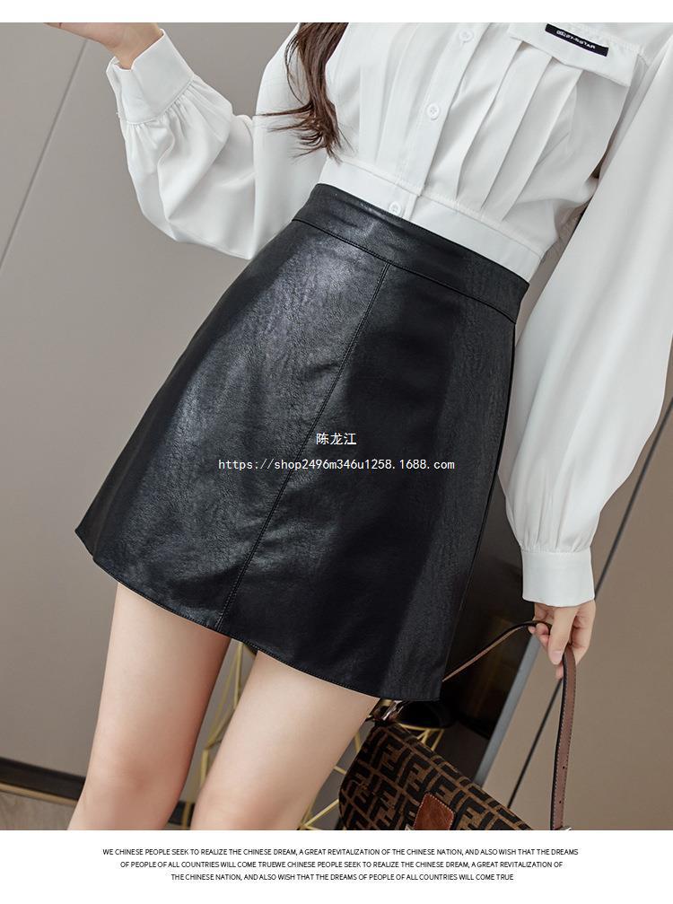 Saia de couro preta outono e inverno Saia curta linha A Hip Casual Saia de couro pequena PU Cintura alta Emagrecimento Novo 2023 Mulheres