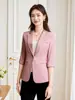 Primavera, verão e outono novo rosa manga sete oitavos pequeno blazer calças femininas profissional casual temperamento terno atacado