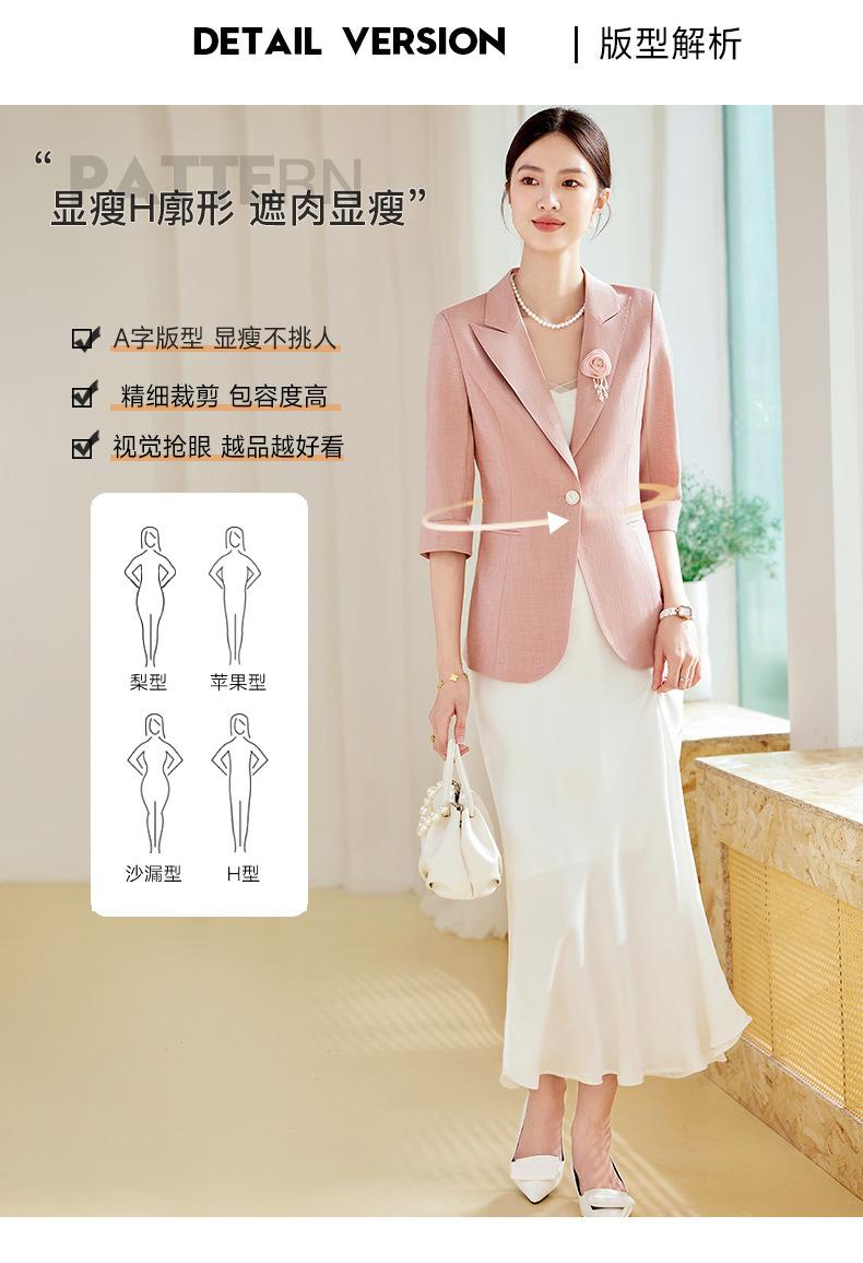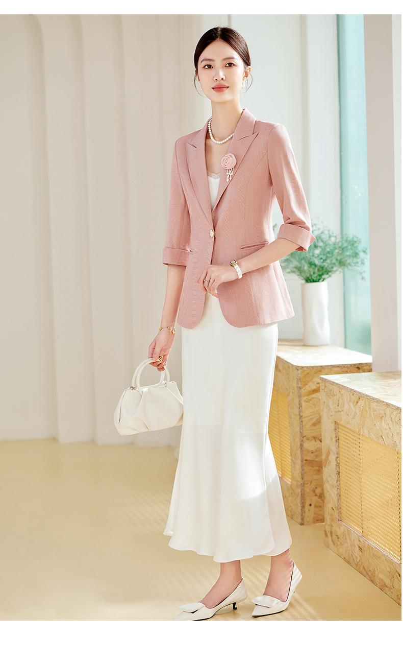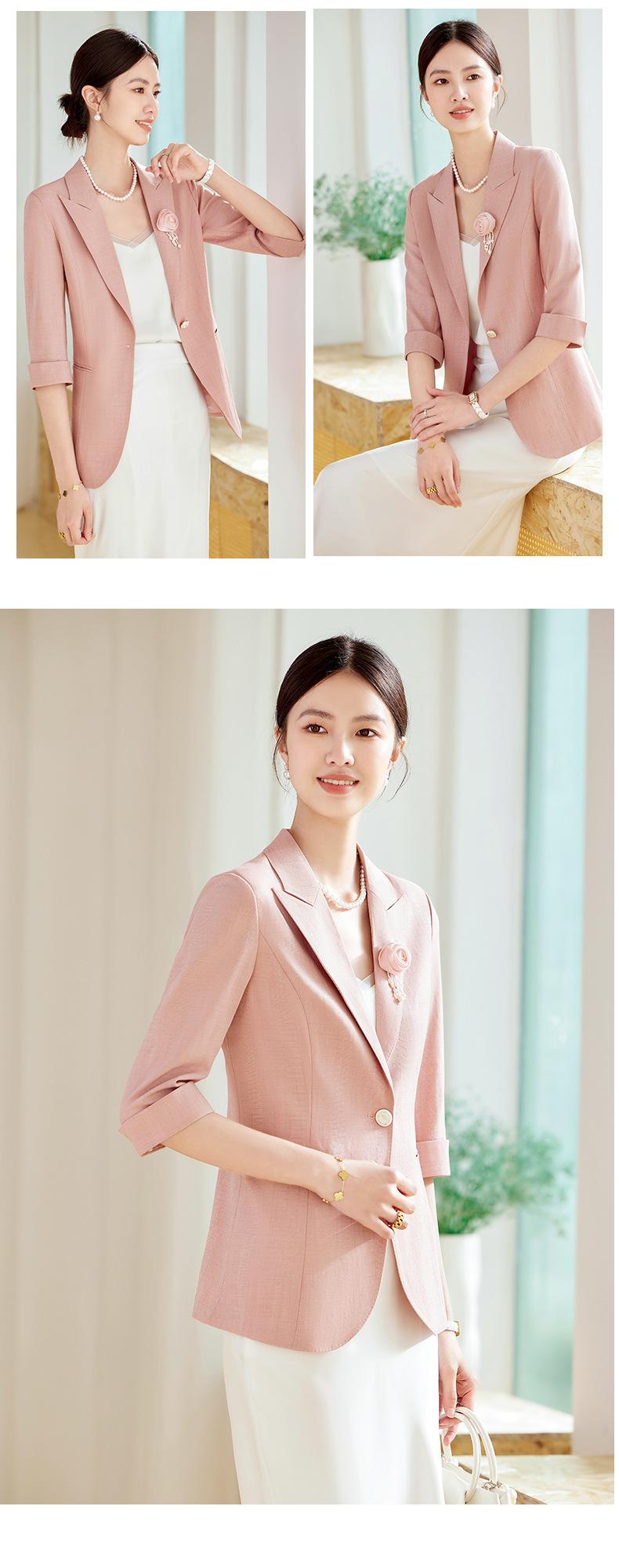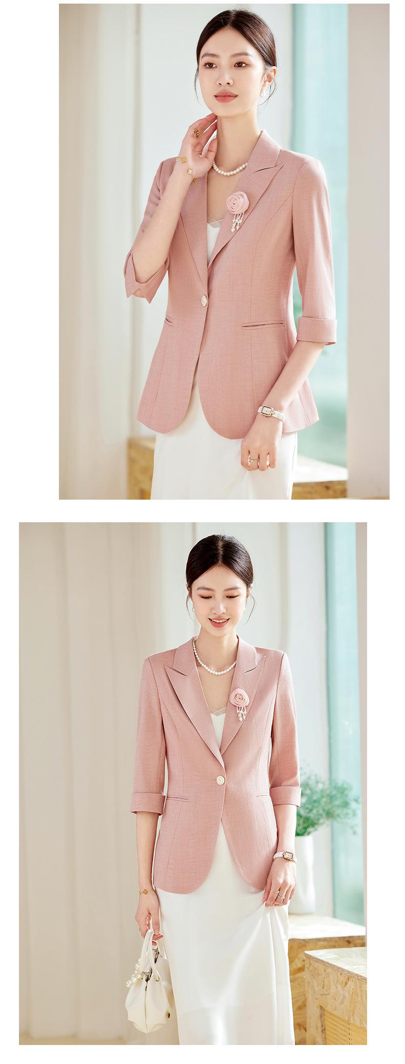 Primavera, verão e outono novo rosa manga sete oitavos casaco gola de terno pequeno mulheres uma geração de moda profissional lazer Joker