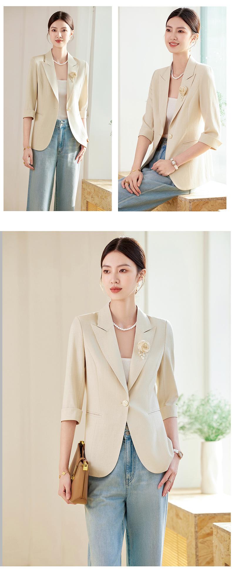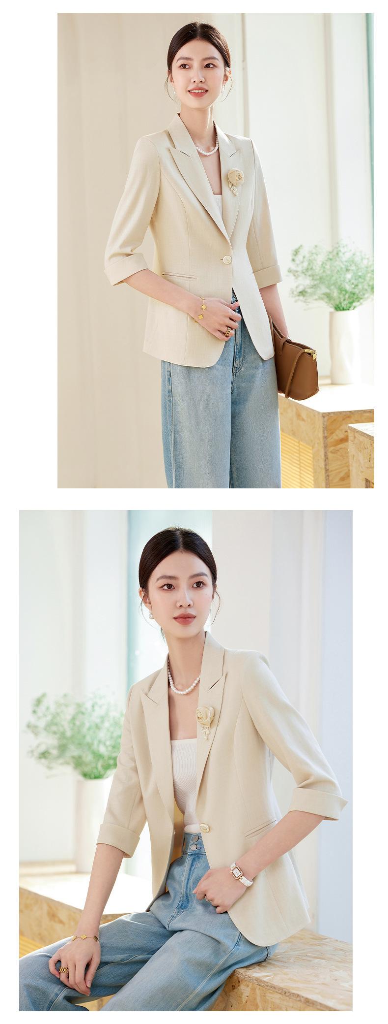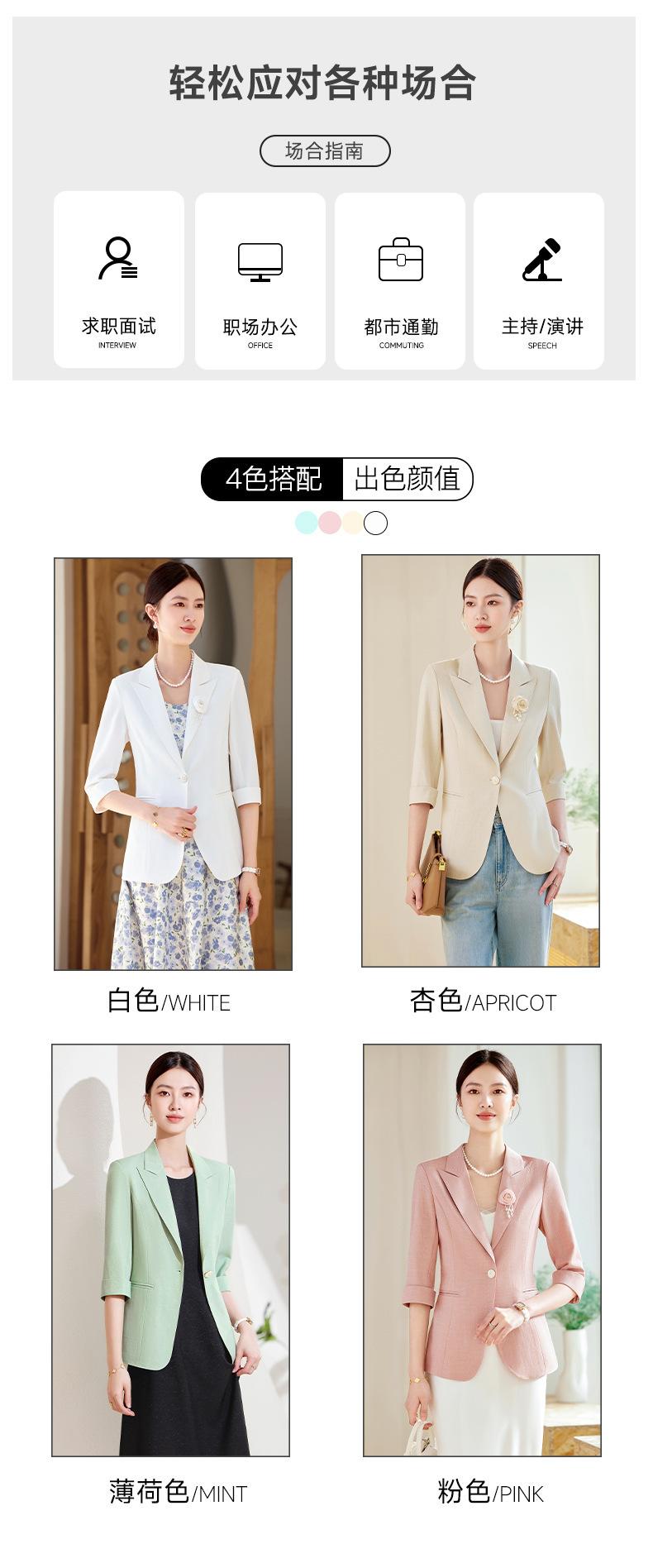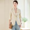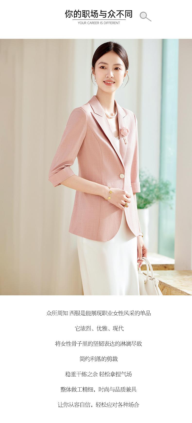 Primavera, verão e outono novo rosa manga sete oitavos casaco gola de terno pequeno mulheres uma geração de moda profissional lazer Joker