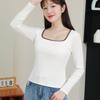 Primavera e Outono 2024 Nova Camisa Slim Decote Quadrado Outono e Inverno Mais Veludo Manga Longa Camisola Francesa Top Roupas Femininas