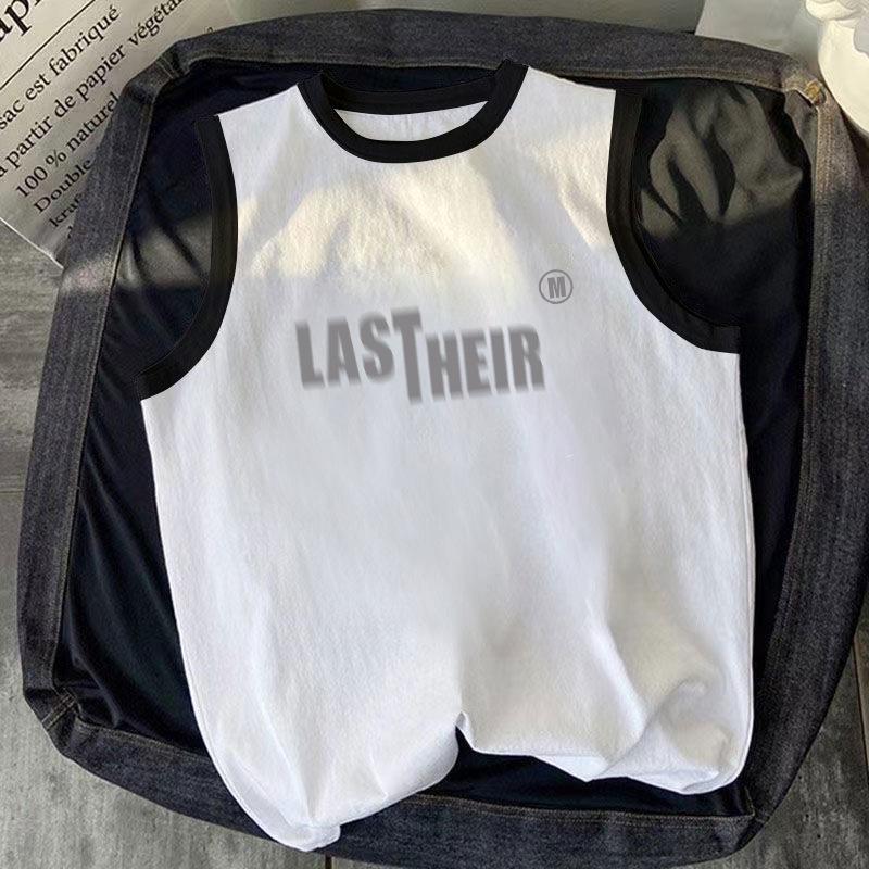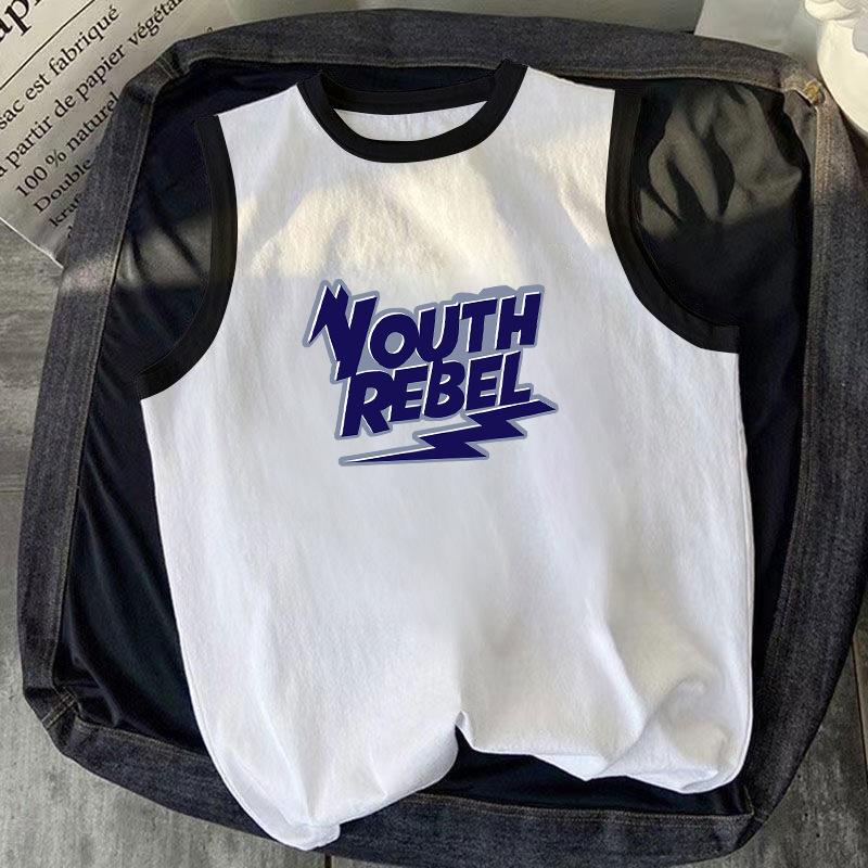 Roupas infantis Meninos de estilo coreano de 6 a 12 anos Carta impressa Colete de algodão puro Desgaste de verão Crianças médias e grandes Cor contrastante Sem mangas Top na moda