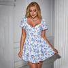 9670#2021 Vestido irregular de manga curta com decote redondo e laço plissado da Amazon europeia e americana
