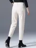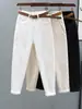 Jeans Feminino Verão 2024 Fino Off-White, Cropped, Plus Size, Cintura Alta, Solto, Calça Cenoura Harem Estilo Pai