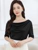 Primavera e verão nova seda de manga curta t- shirt das mulheres design sentido cor sólida camisa base fina solta emagrecimento top atacado