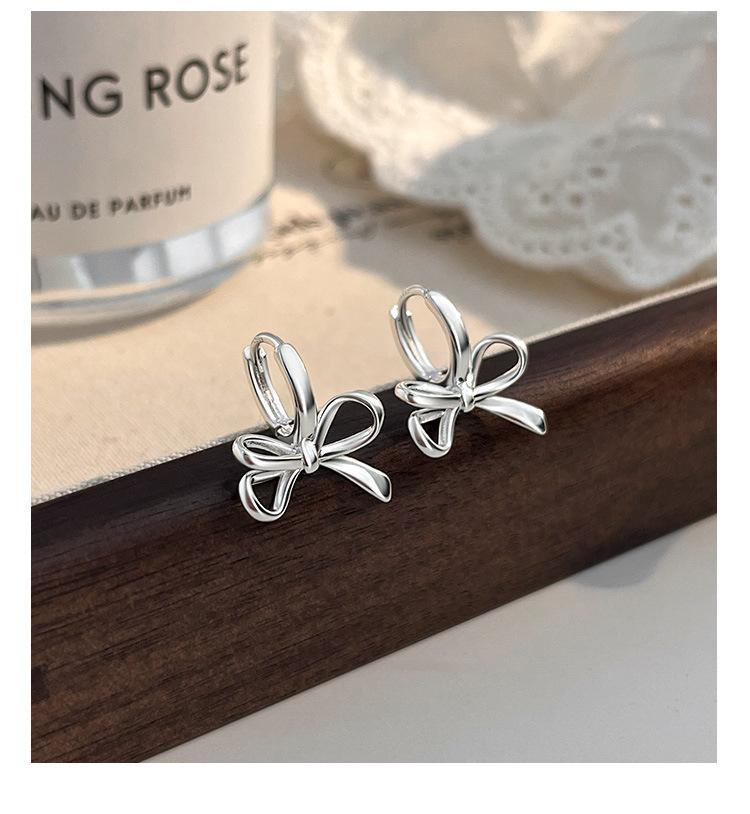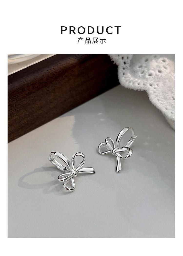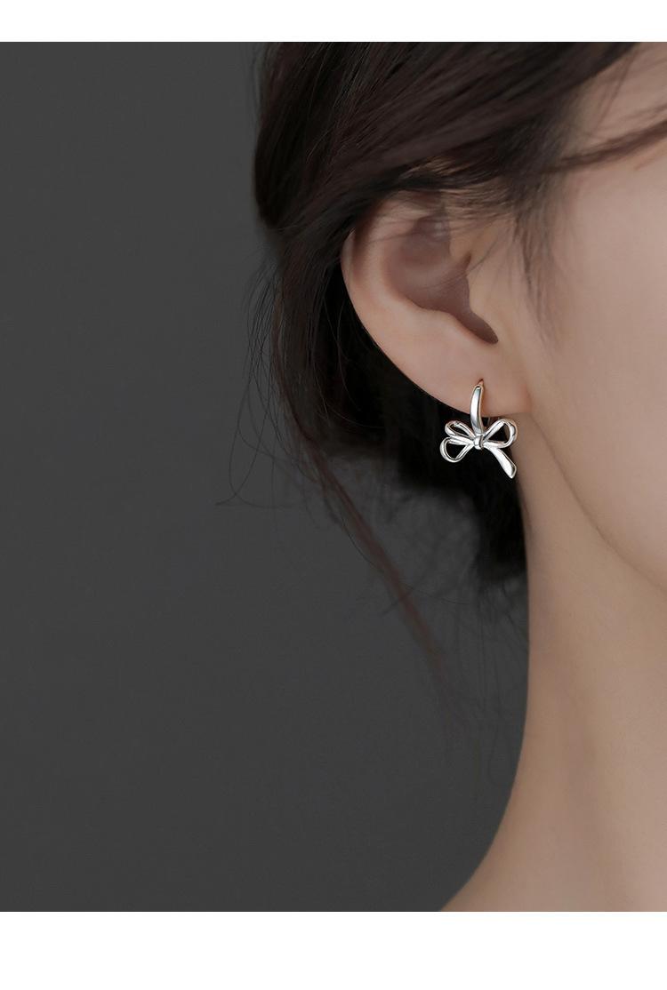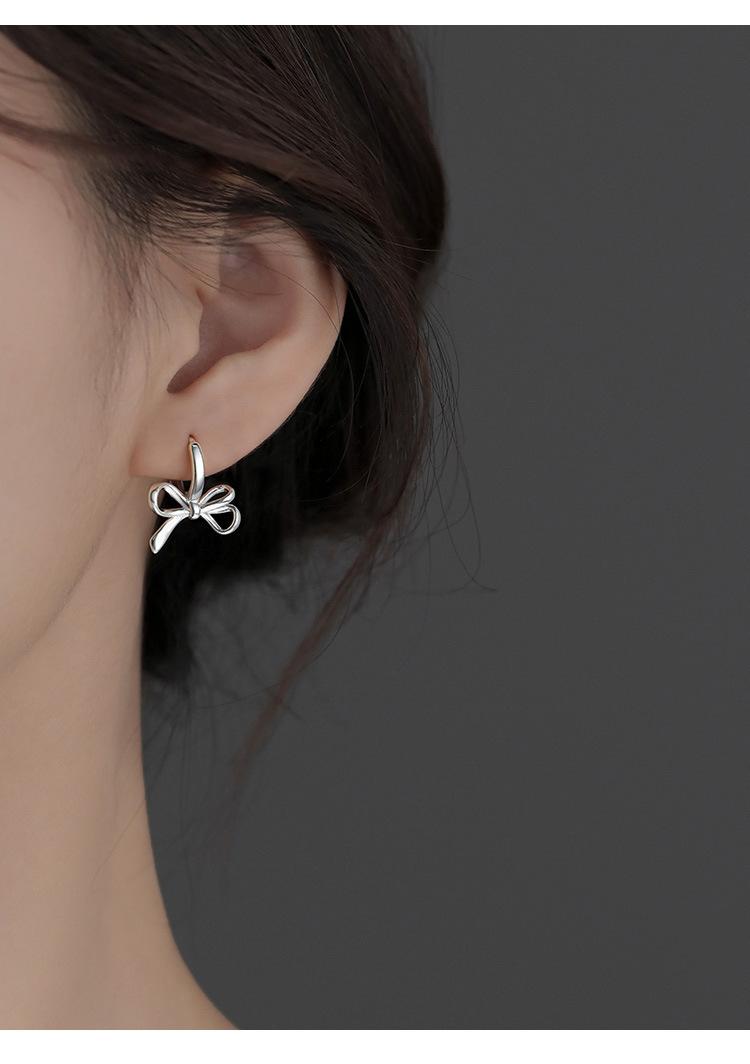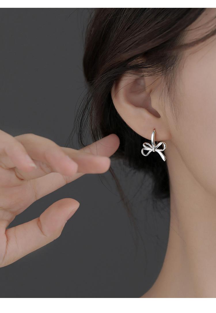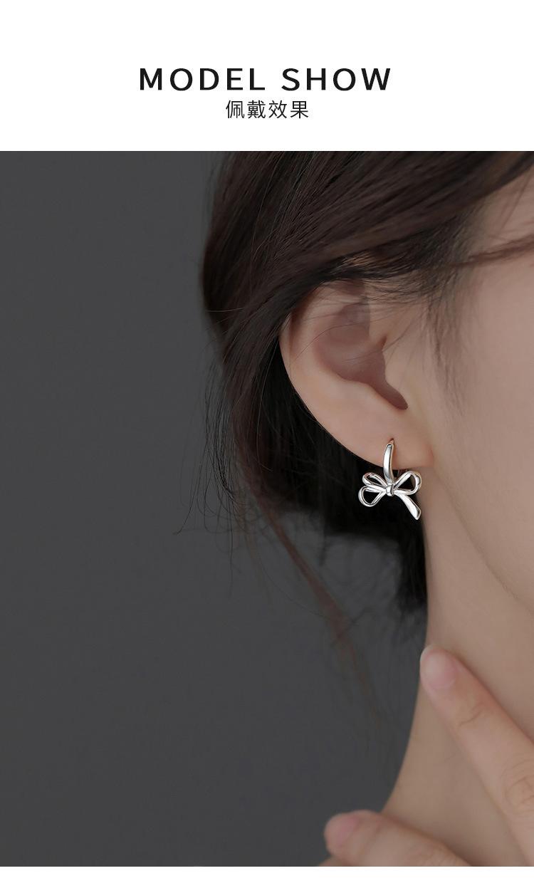 Brincos de laço de linha simples Personalidade da moda feminina elegante S925 Prata chapeado Pin Ear Buckle Brincos pequenos da moda