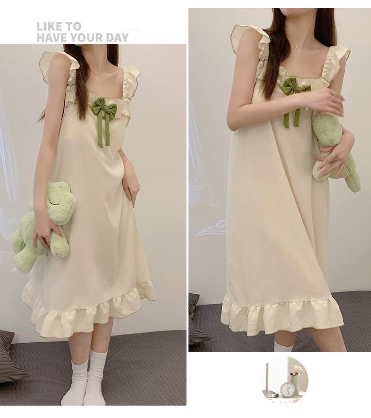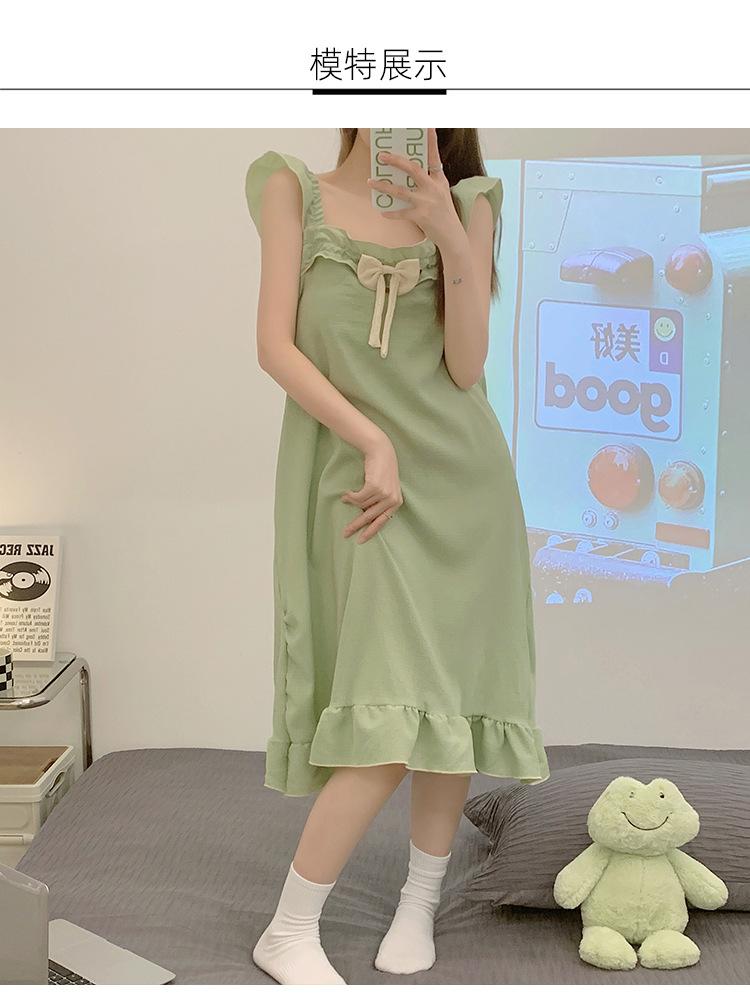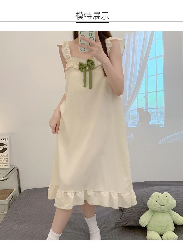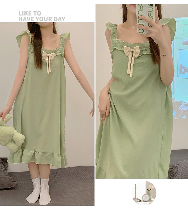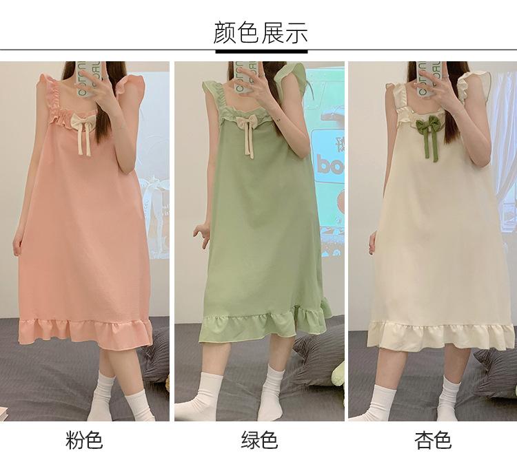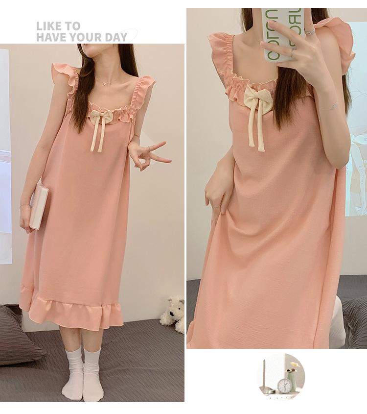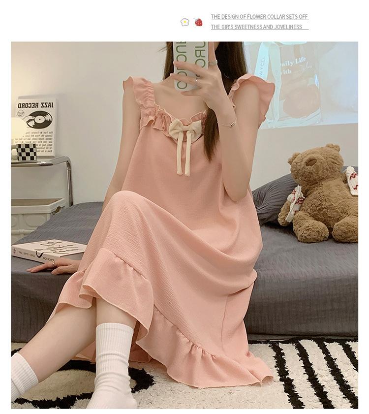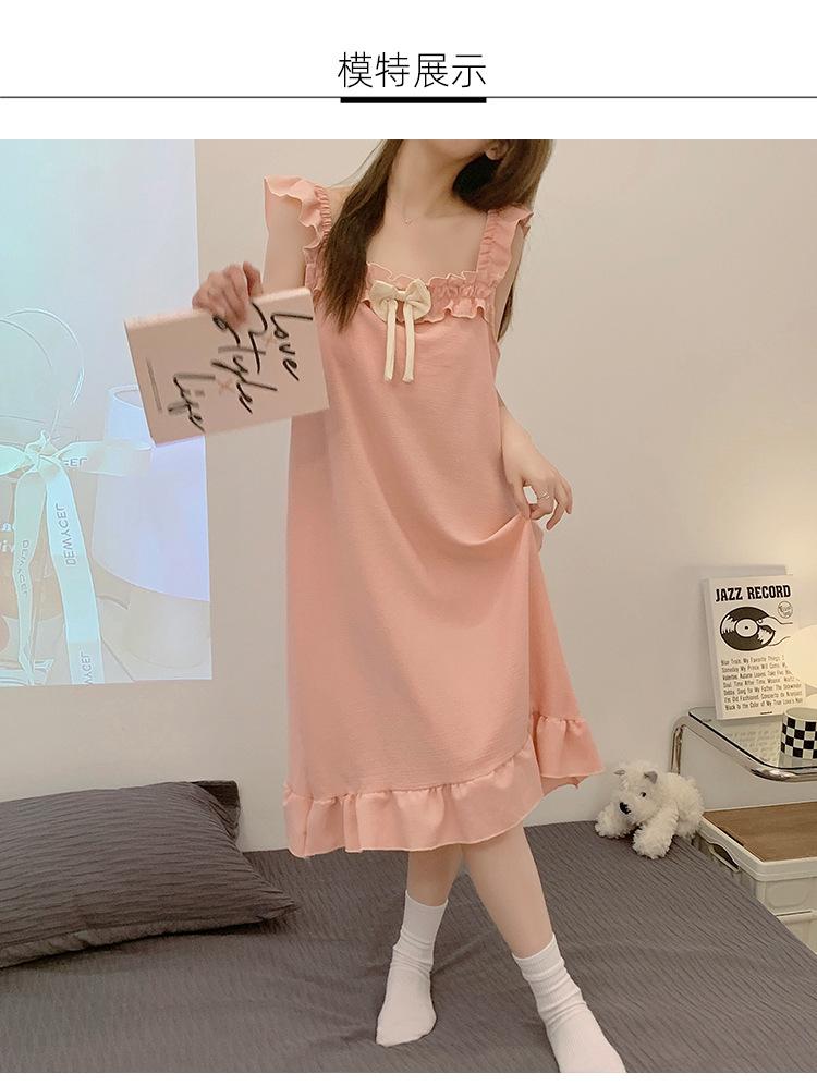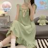 Nova Chegada Verão Sling Camisola com Almofada no Peito Estilo Coreano Doce Espuma Mid-Length Pijamas para Mulheres Roupas Exteriores para Casa