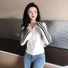 Estilo coreano Estilo preguiçoso Contraste Cor Listrada Malha Cardigan Jaqueta Feminina Outono 2024 Novo Estilo Solto Slim-fit Top