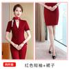 Red short-sleeved skirt pants white vest [to send silk scarf]]