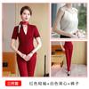 Red vest pants white short-sleeved shirt [send silk scarf]]