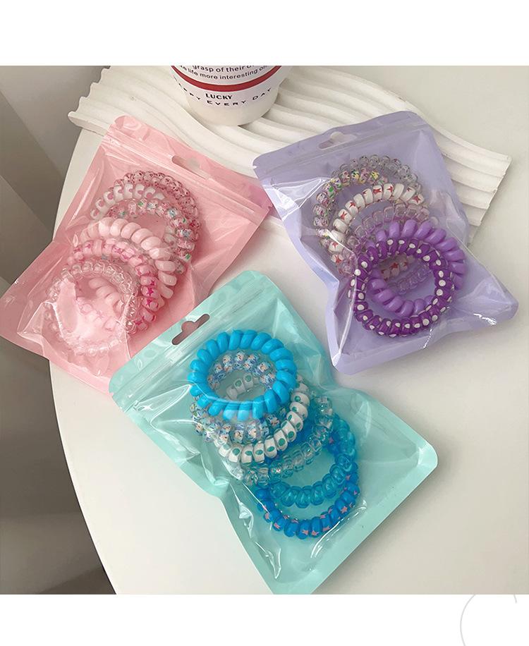 Pink hair band 6 bags, Yellow Hair band 6 bags, Blue hair band 6 bags, Green hair band 6 bags, Purple hair band 6 bags