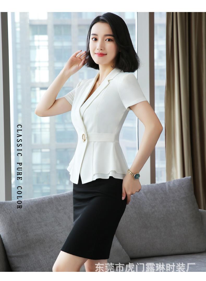 Terno de Trabalho Feminino de Manga Curta 2023 Verão Novo Ajustado Elegante Vendas Esteticista Roupas de Trabalho