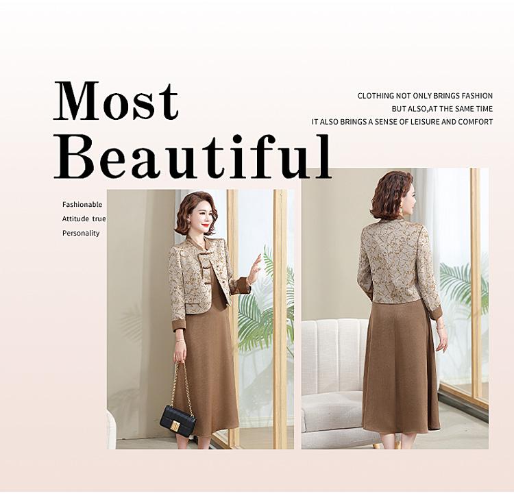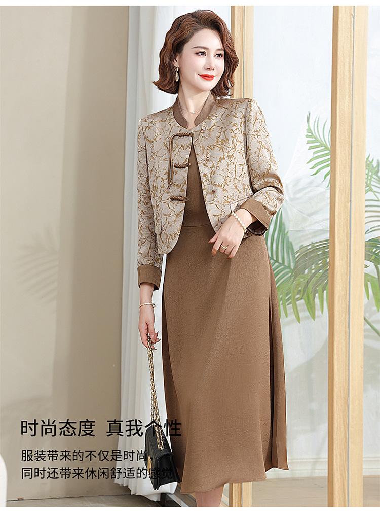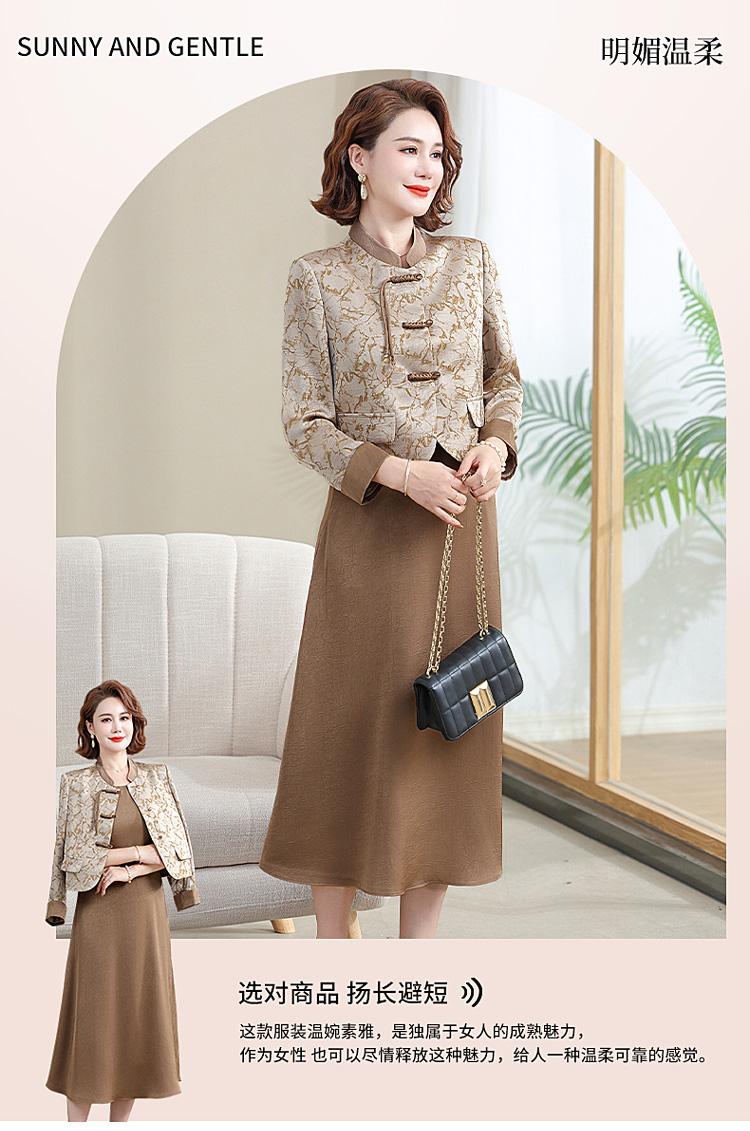 Temperamento mãe primavera e verão terno vestido longo de meia-idade das mulheres casaco curto de meia-idade primavera e outono conjunto de duas peças