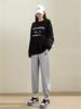 Calças esportivas cinza femininas outono 2024 novo emagrecimento de cintura alta plus size solto perna larga casual calça de moletom
