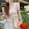 Cinza Bordado Ins Design da moda Camiseta de manga curta Feminina Verão Estilo americano Retro Garota Quente Cintura justa Emagrecimento Ombro Top