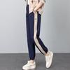 Nova moda de verão calças finas de cenoura femininas soltas de algodão lavado e linho elástico cintura alta calças harém casuais femininas
