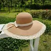 Chapéu de Aba Grande Chapéu de Palha de Renda Chapéu de Tecido de Moda Feminino Verão Praia Chapéu de Sol Viagem Ao Ar Livre Chapéu de Sol