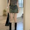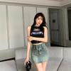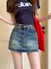 Saia Jeans Vintage Hot Girl Verão Feminino Estilo Americano Pequeno Cintura Alta Anti-reflexo Emagrecimento A-line Saia Meio Quadril