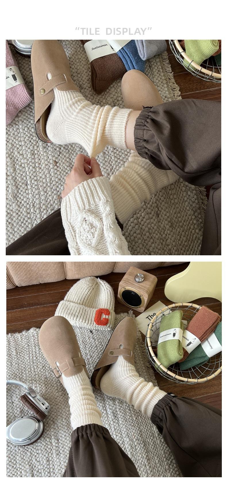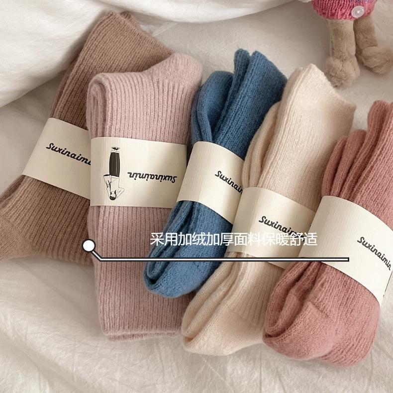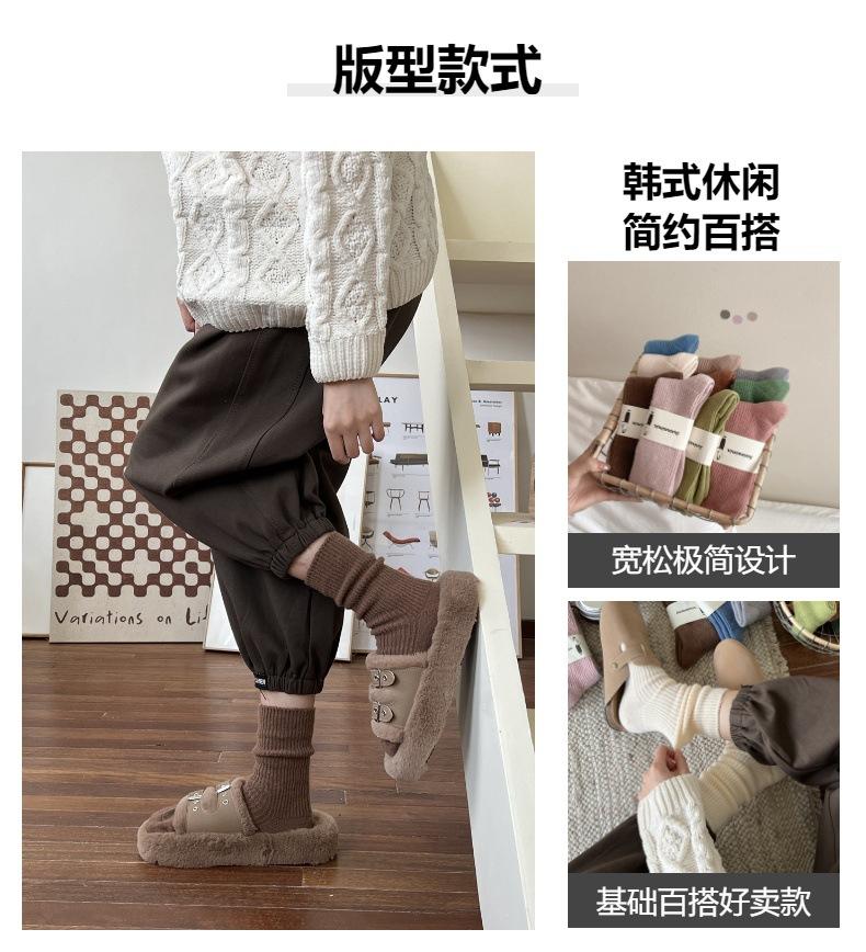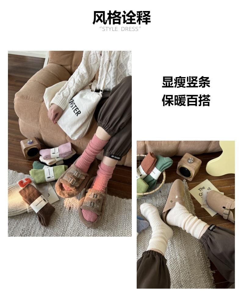 Meias de lã femininas outono e inverno forradas de lã espessas meias de comprimento médio cor sólida japonesa listra fina emagrecimento meias meias quentes meias