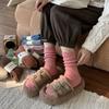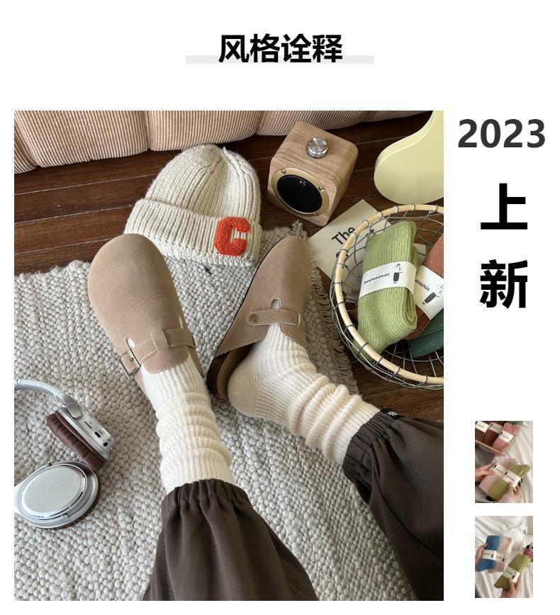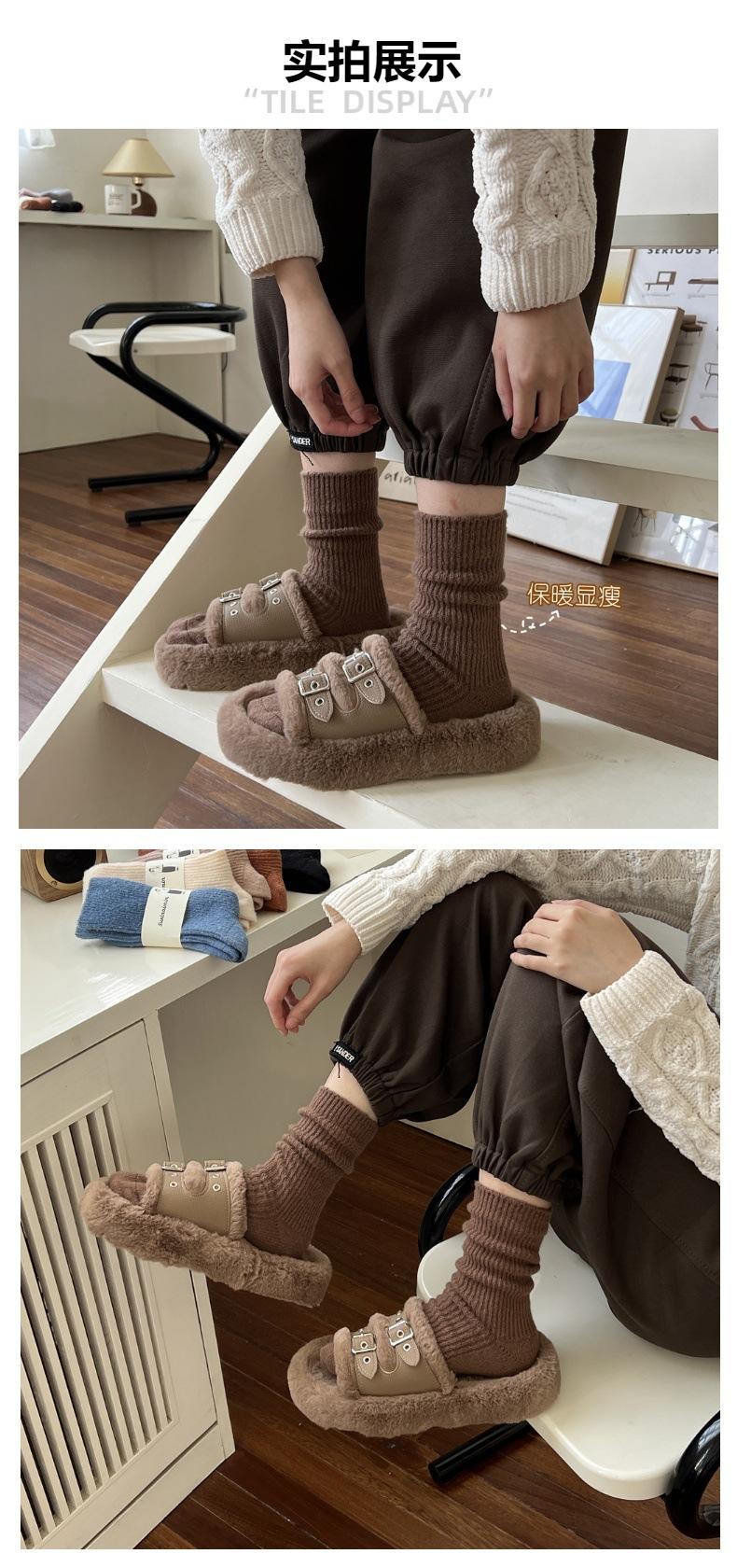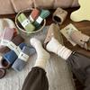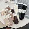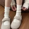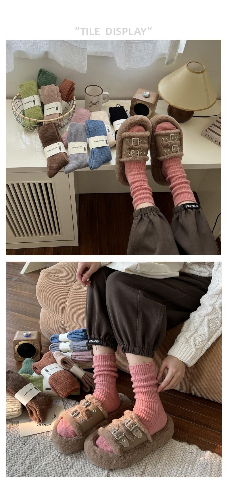 Meias de lã femininas outono e inverno forradas de lã espessas meias de comprimento médio cor sólida japonesa listra fina emagrecimento meias meias quentes meias
