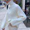 2022 outono e inverno camisola de gola alta feminina estilo coreano engrossado Jacquard malha camisa de fundo solta ombro manga torção camisola mulheres