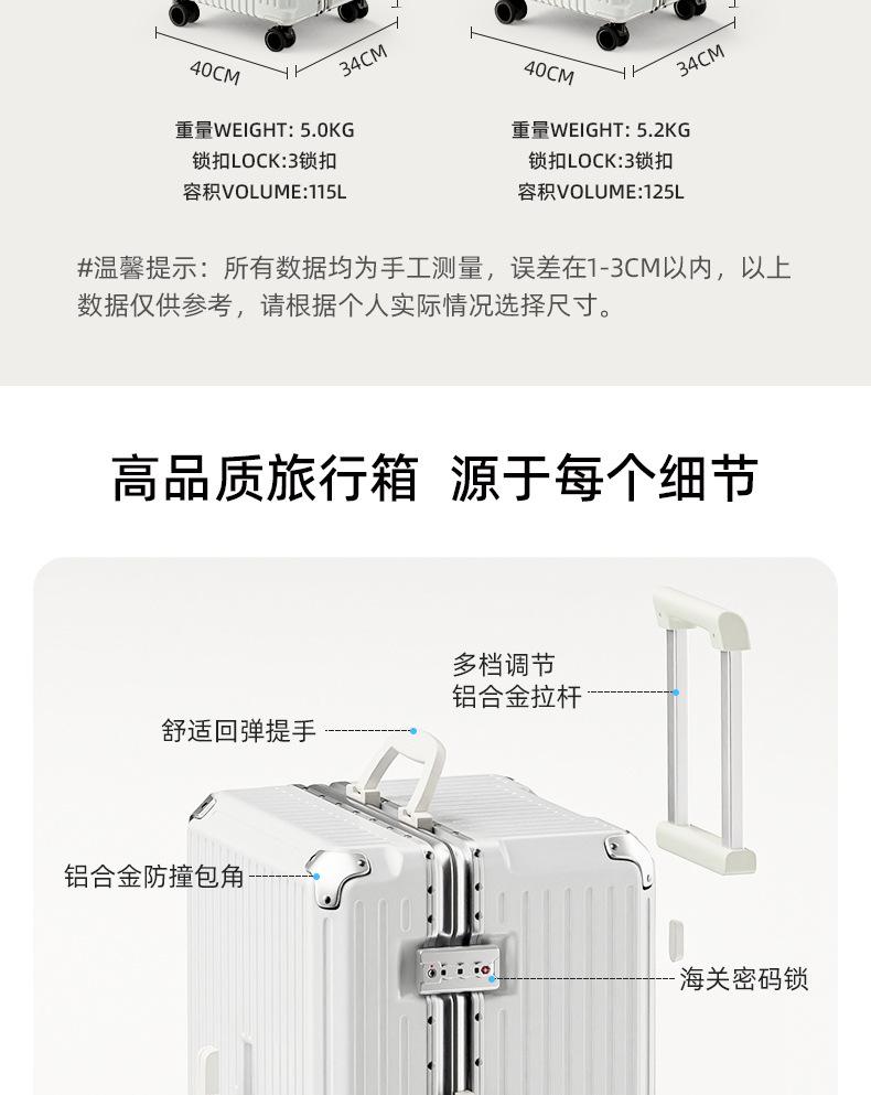 Bagagem de grande capacidade Caixa de estrutura de alumínio de 32 polegadas Durável para homens de 30 polegadas Carrinho resistente a arranhões Bagagem de viagem espessa