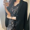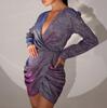 2025 Transfronteiriço Novo Elegante Elegante Decote em V Ajuste Slim Comprimento Médio Renda Quadril Saia Sereia Vestido para Mulheres