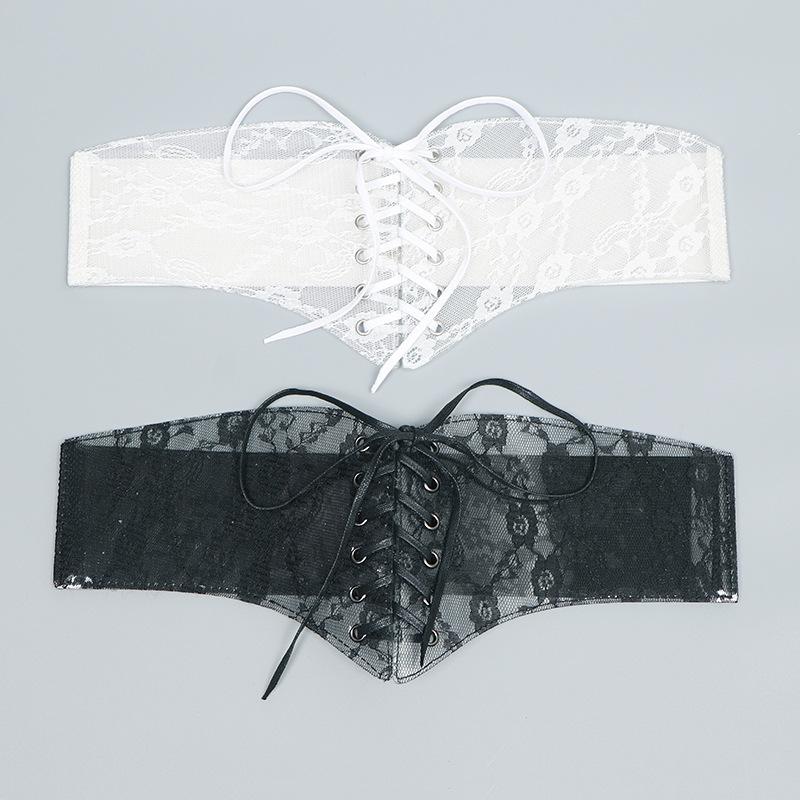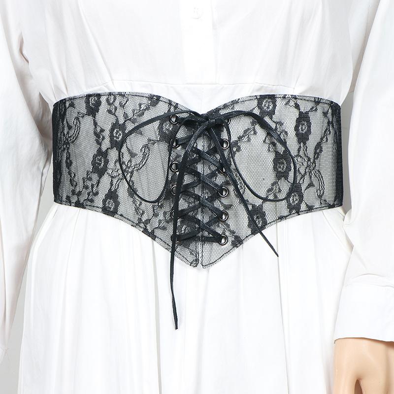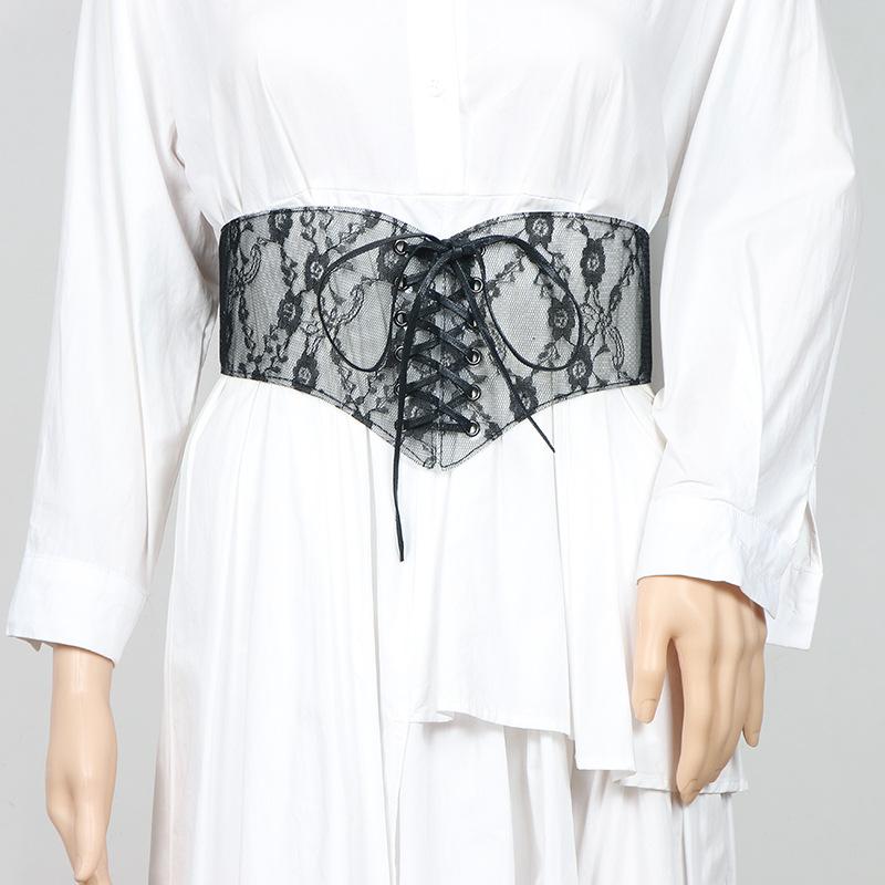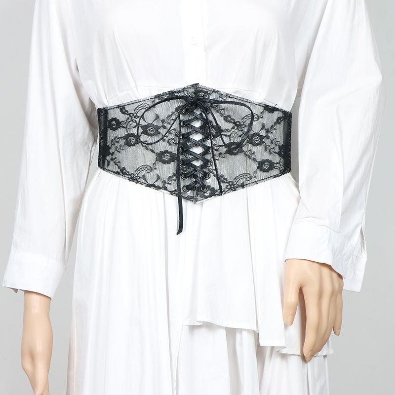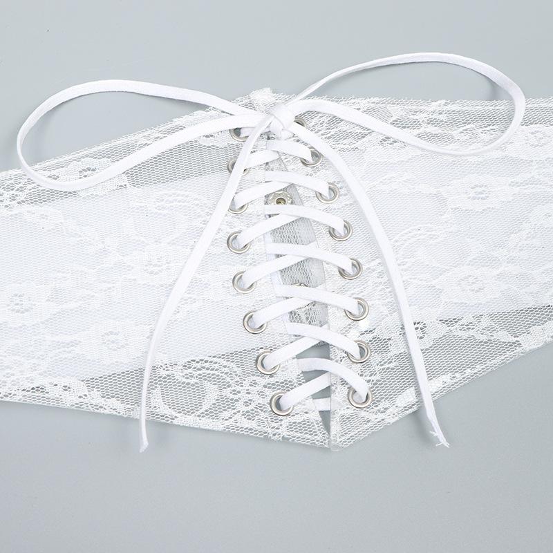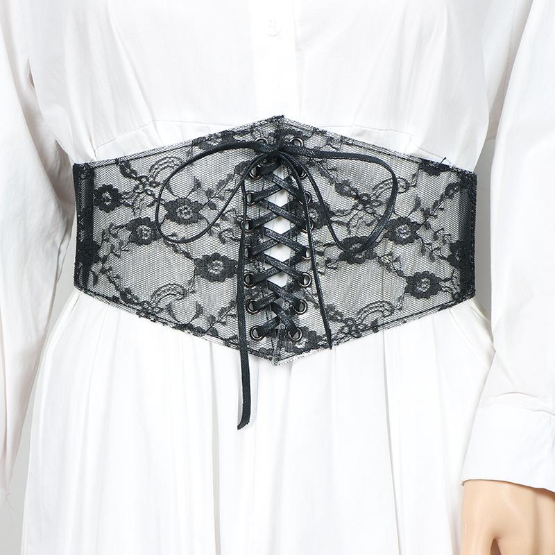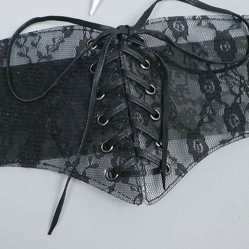 Alça cruzada gótico punk rock super larga cintura selada cintura justa cinto elástico acessórios preto e branco renda vermelha couro pu