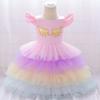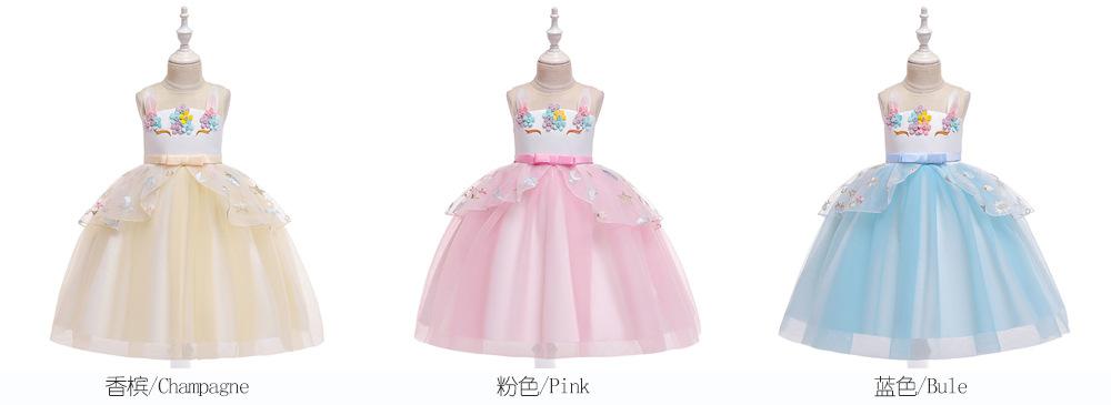 Vestido infantil vestido novo unicórnio europeu e americano meninas vestido de noite vestido de princesa traje longo roupas infantis atacado