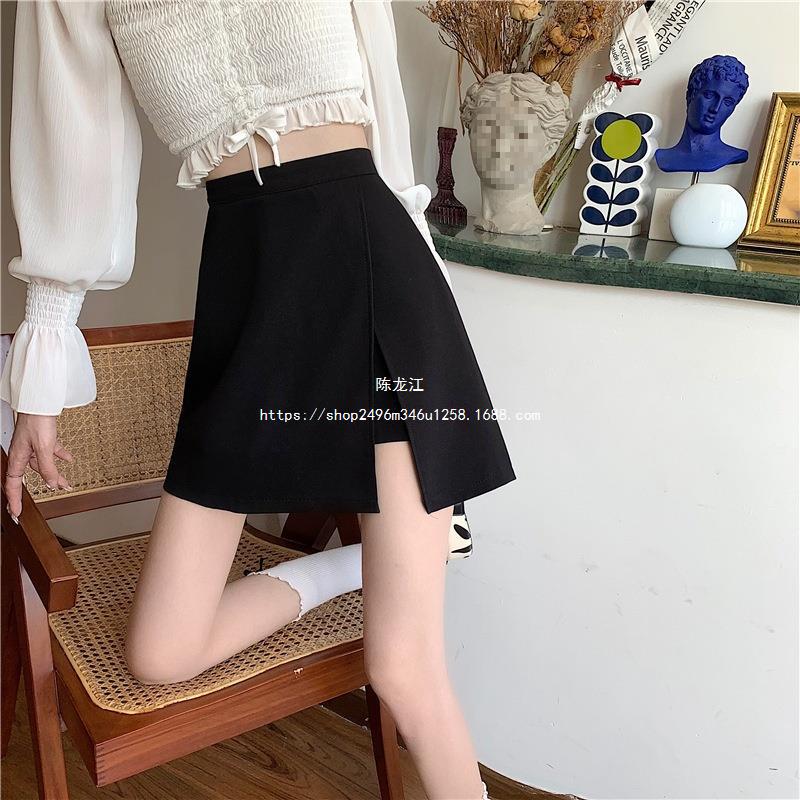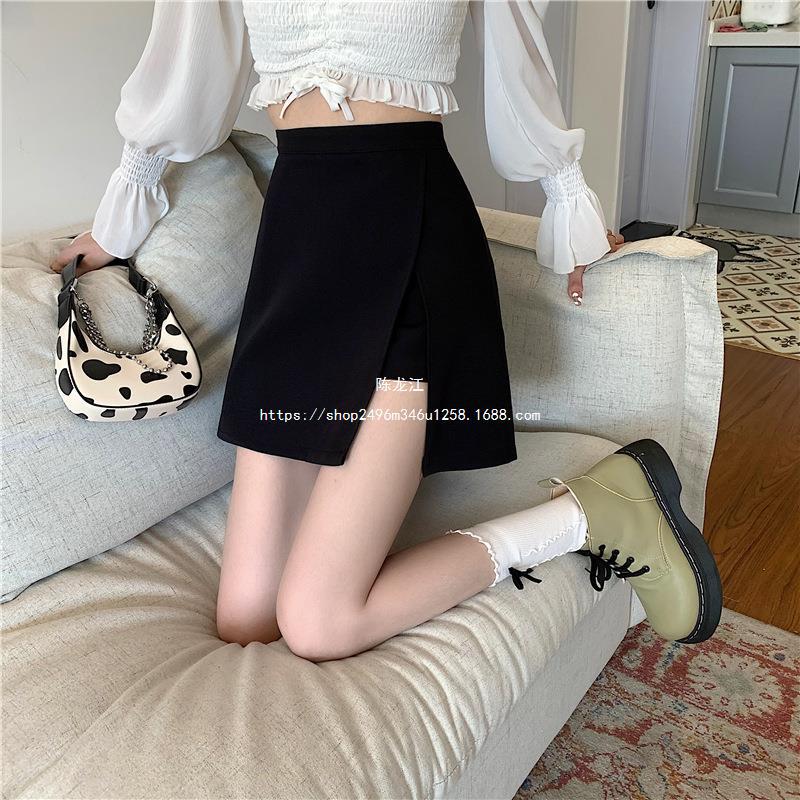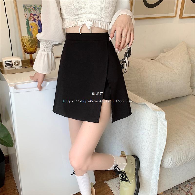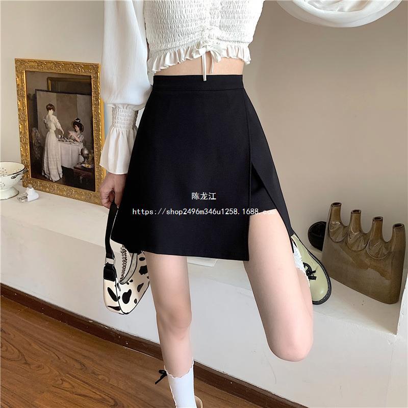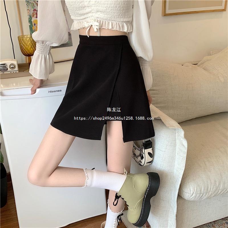 Saia Saia Curta Feminina plus size Novo Quadril Cintura Alta Emagrecimento Verão Calças Da Moda Preto Irregular Gordinha Menina Dividida