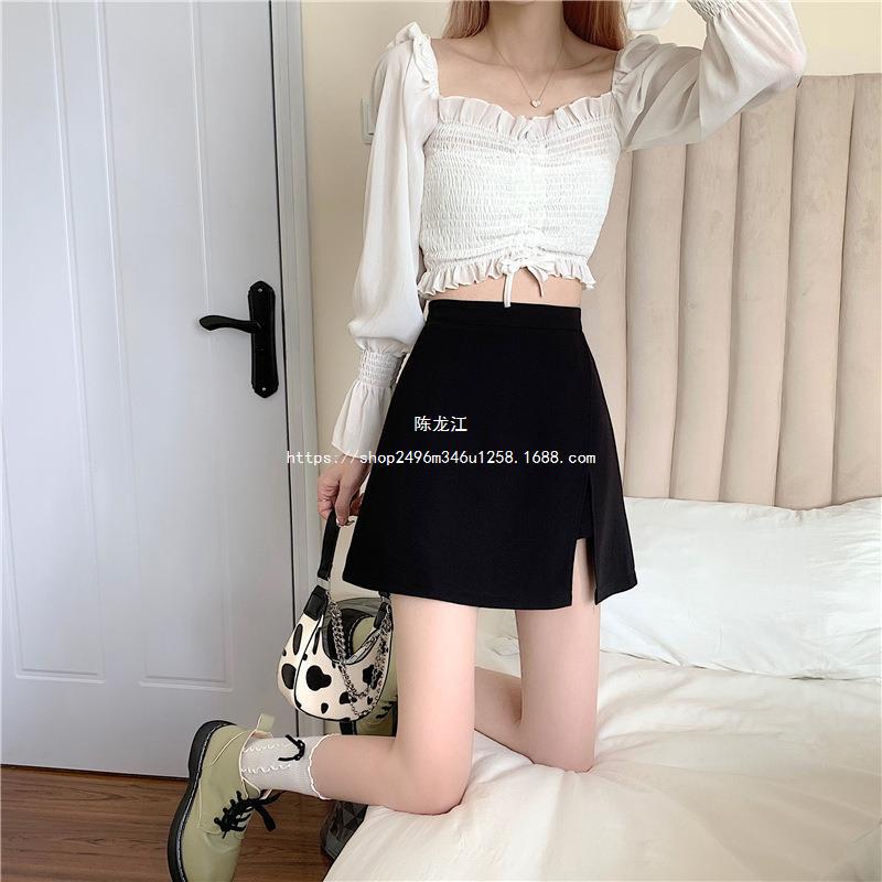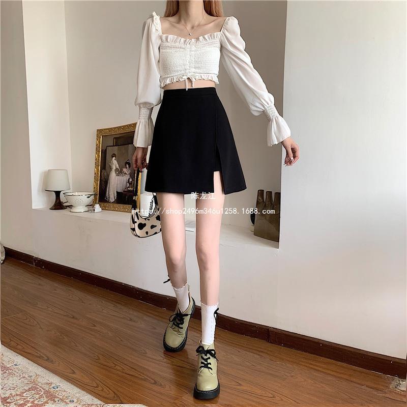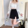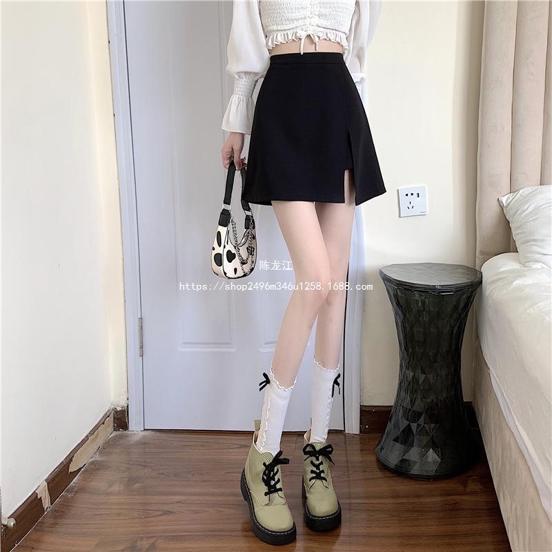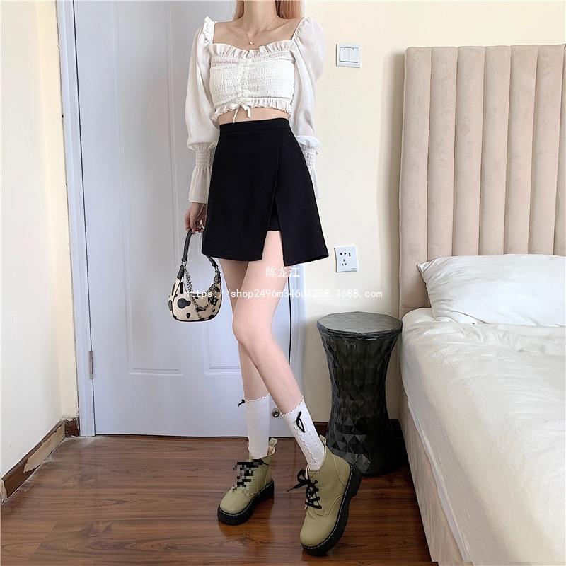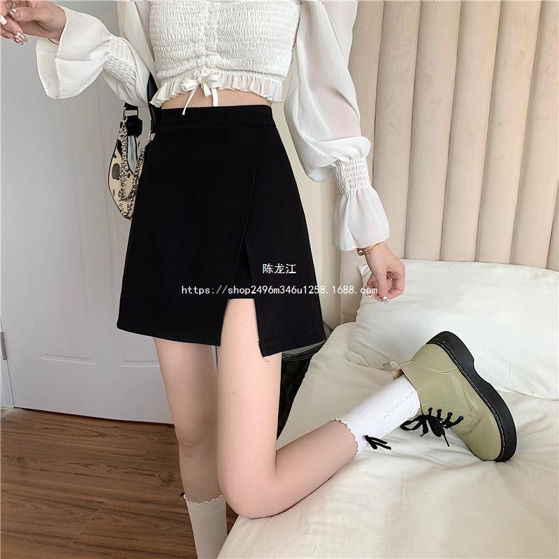 Saia Saia Curta Feminina plus size Novo Quadril Cintura Alta Emagrecimento Verão Calças Da Moda Preto Irregular Gordinha Menina Dividida