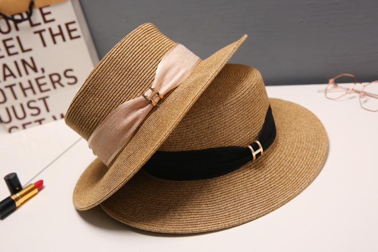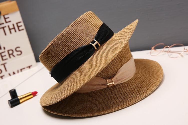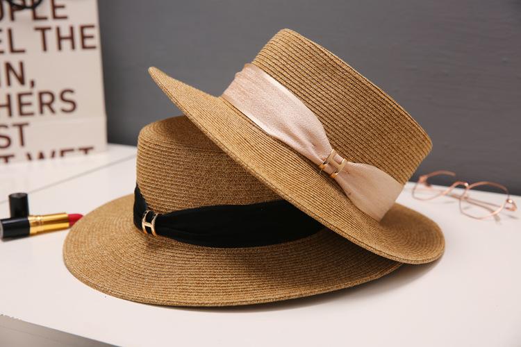 Chapéu de palha estilo francês estilo japonês chapéu de palha de topo plano chapéu de palha de verão feminino chapéu de palha de praia 2021 chapéu de sol protetor solar feminino explosões