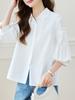 Camisa Elegante Azul Casulo de Algodão 2026 Estilo Fino Manga Três Quartos Primavera e Verão Novo Estilo Camisa Versátil Elegante para Trabalho Casual