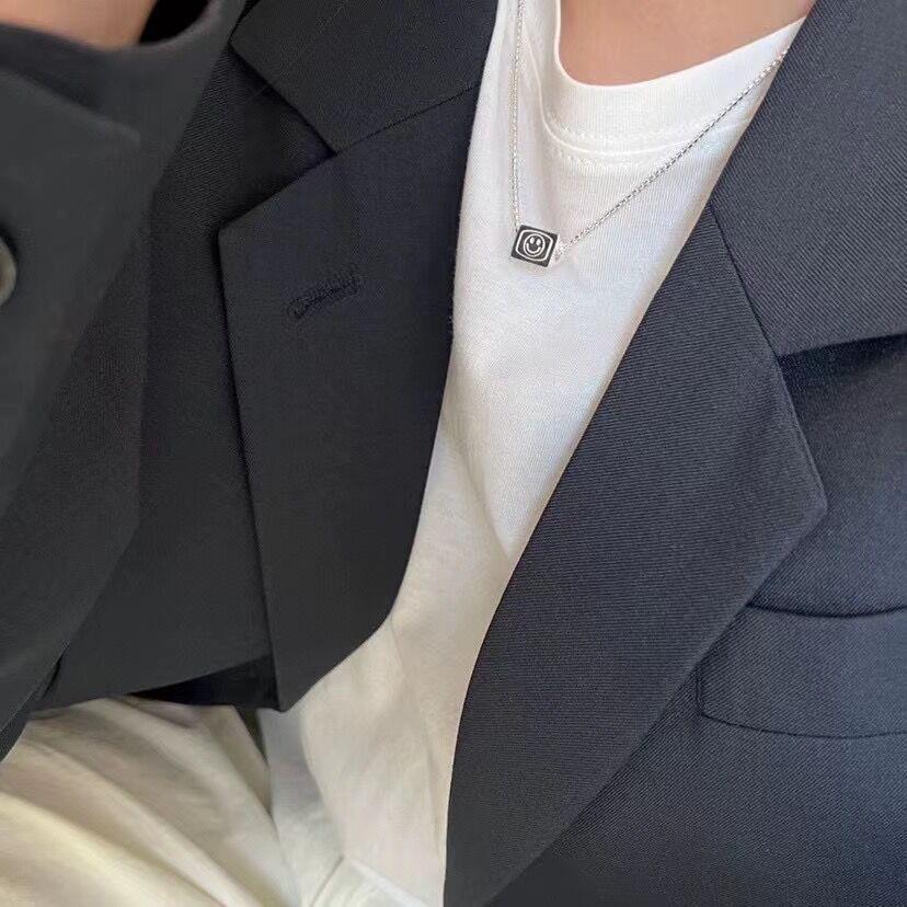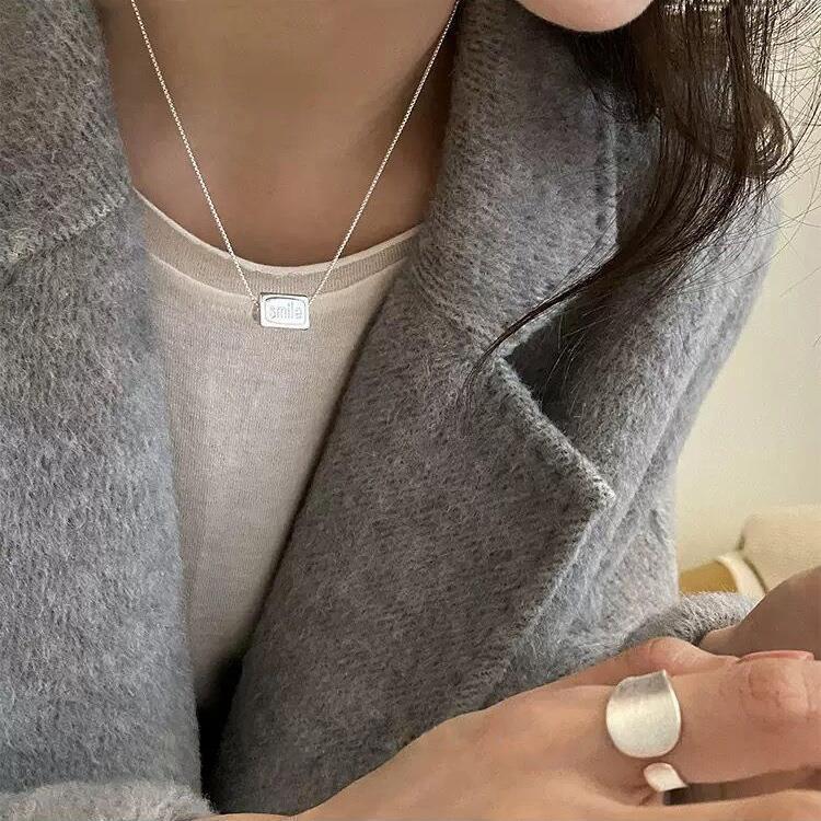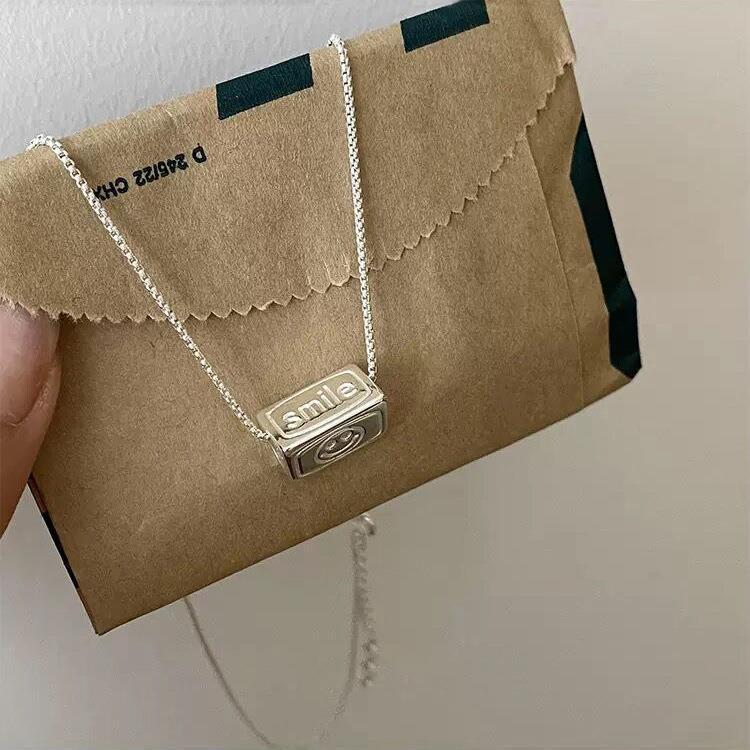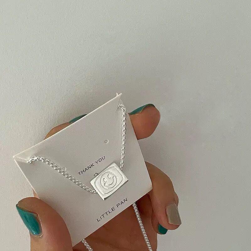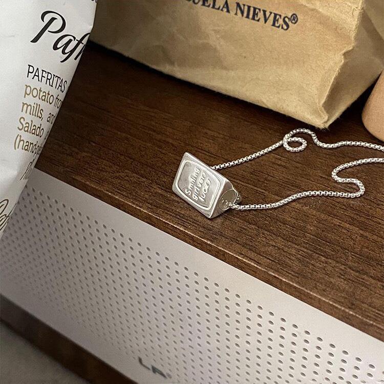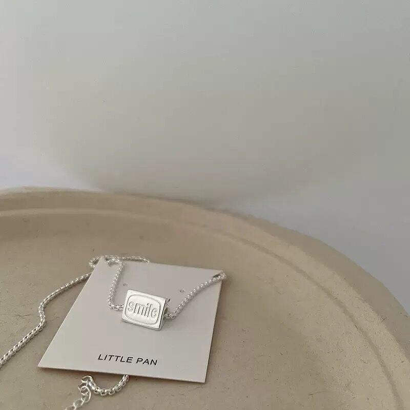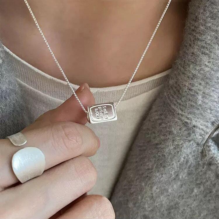 Colar Pingente Flip de Três Lados para Mulheres Estilo Coreano Personalizado Moda Letra Prateado S925 Corrente Clavicular Versátil Colar de Pescoço