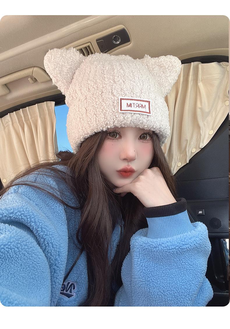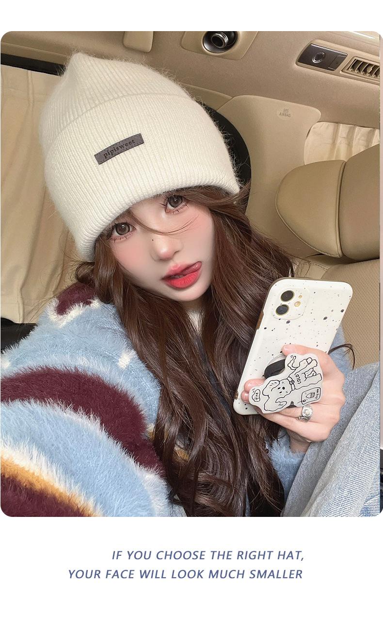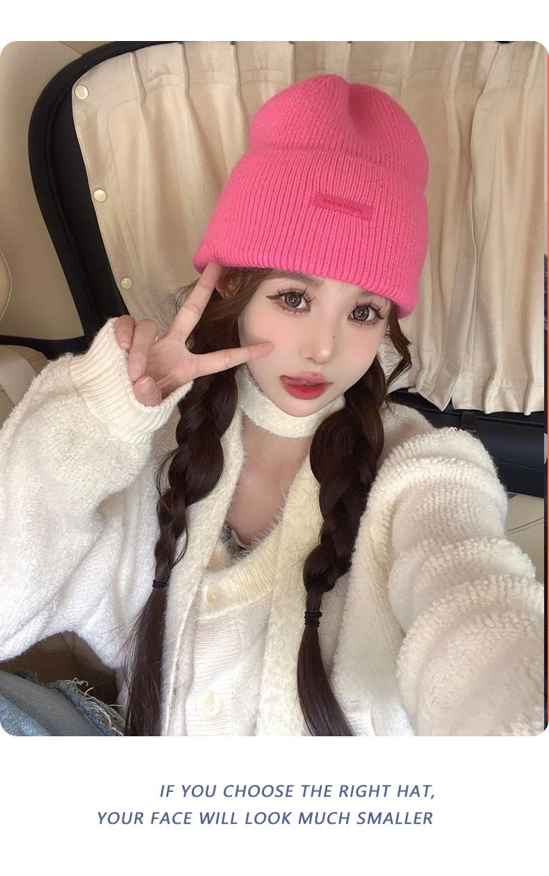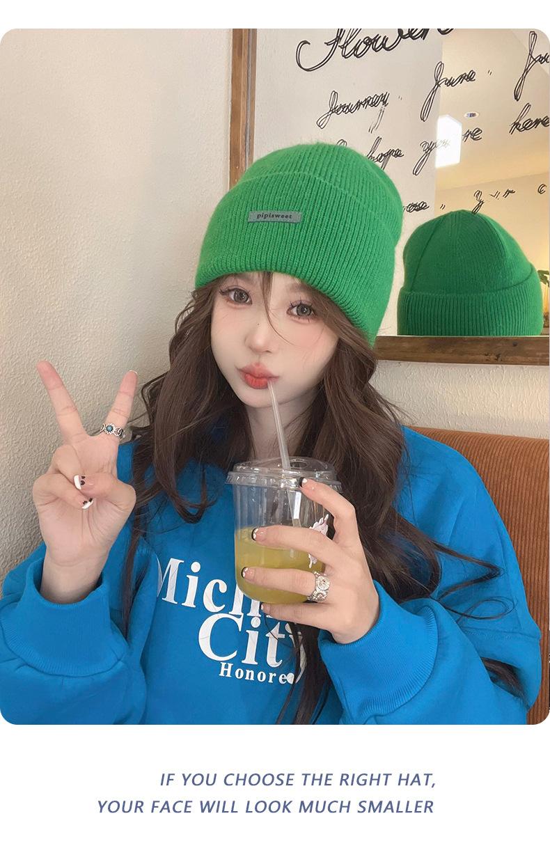 Outono e Inverno carta patch chapéu de lã quente all-match chapéu de malha estilo coreano proteção auricular chapéu frio rosto-olhando pequeno chapéu moda feminina